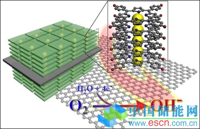 在國家自然科學(xué)基金和國家重點(diǎn)基礎(chǔ)研究發(fā)展計劃的支持下,中國科學(xué)院過程工程研究所王丹研究員的研究團(tuán)隊與國家納米科學(xué)中心唐智勇研究員的研究團(tuán)隊合作,從分子組裝的角度出發(fā),在石墨烯上,通過對金屬離子及卟啉分子的多次吸附,制備了鈷卟啉/石墨烯復(fù)合催化劑(如圖)。并進(jìn)一步通過對催化劑結(jié)構(gòu)、厚度及性能的可控合成,實現(xiàn)了催化活性的最大化。同時,由于石墨烯的大比表面積、高導(dǎo)電性及穩(wěn)定性,合成的催化劑穩(wěn)定性及抗甲醇中毒性能均得到了很大的改善。該成果為高活性高穩(wěn)定性復(fù)合非貴金屬氧還原催化劑的設(shè)計與開發(fā)開辟了新的路徑。相關(guān)研究結(jié)果發(fā)表在國際著名雜志《德國應(yīng)用化學(xué)》上(Angew. Chem. Int. Ed. 2013, 52, 5585-5589.)。