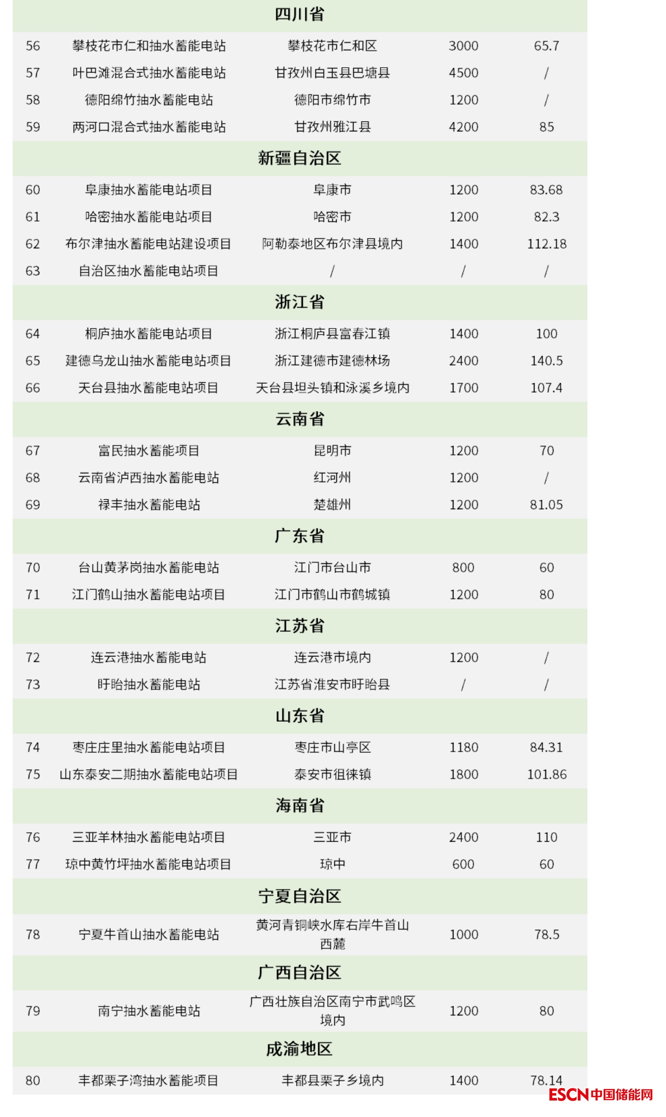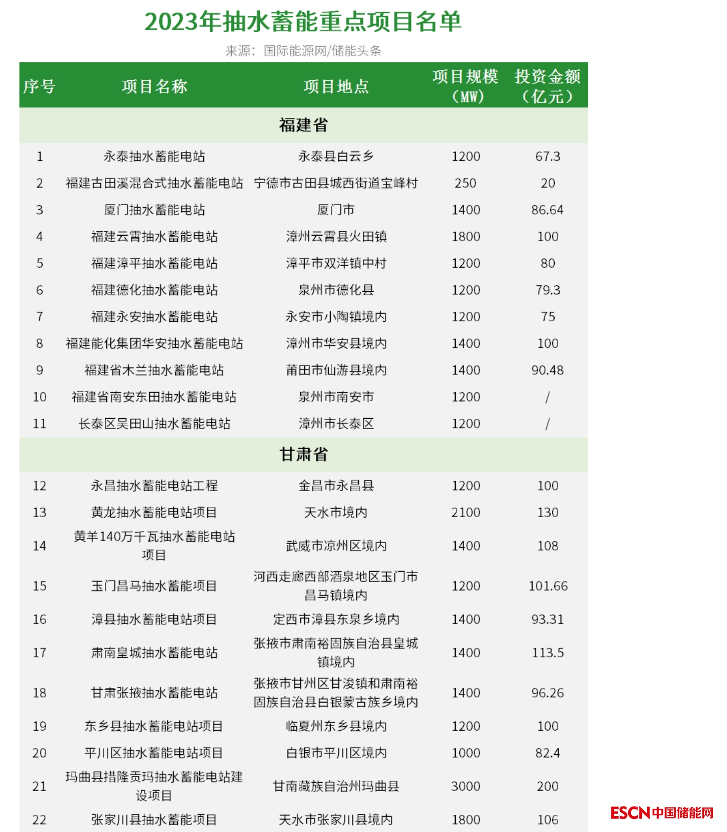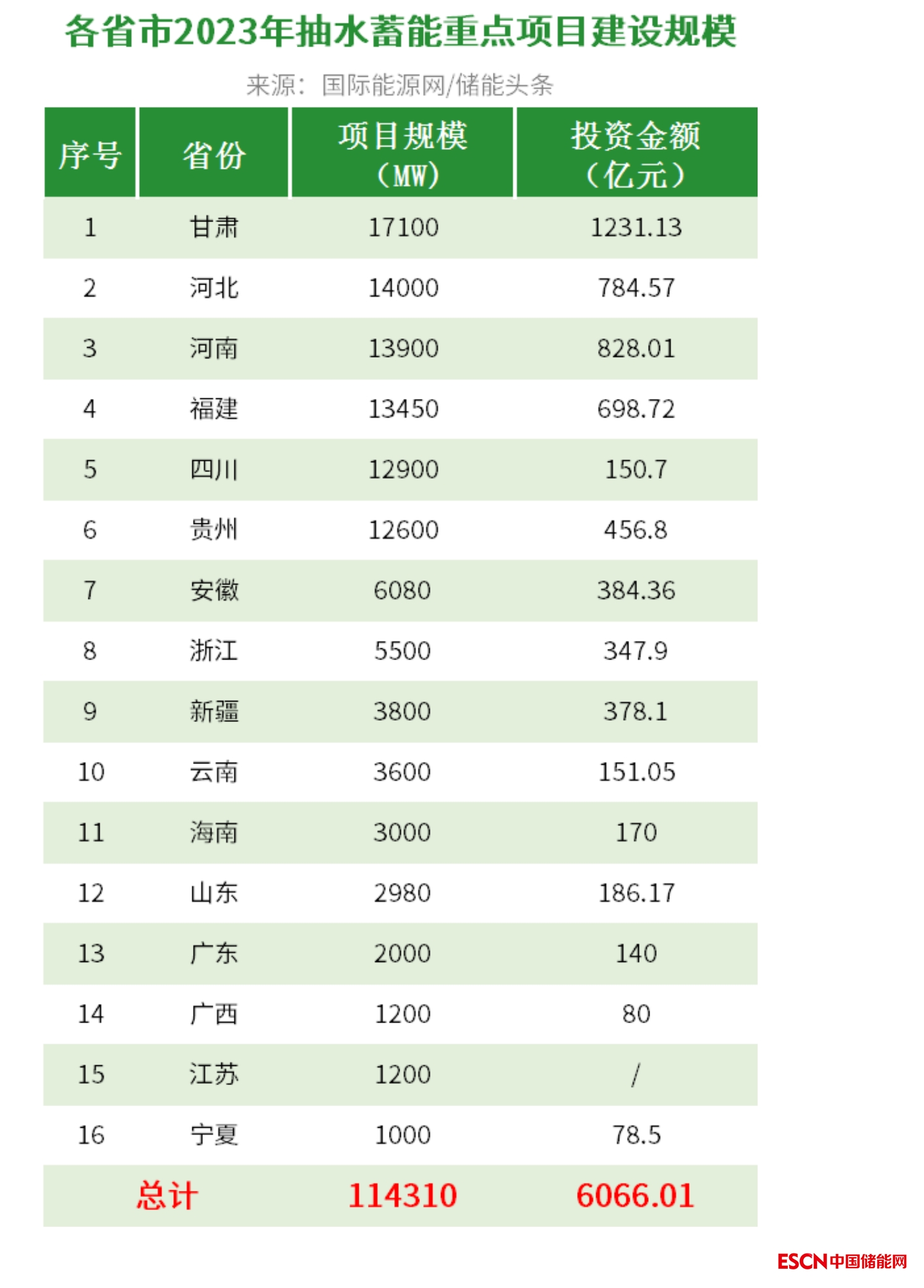 據(jù)據(jù)國際能源網(wǎng)/儲(chǔ)能頭條(微信號(hào):chuneng365)統(tǒng)計(jì),截至目前,2023年甘肅、河北、河南、福建、四川、貴州、安徽、浙江、新疆等省份共公布重點(diǎn)抽水蓄能項(xiàng)目累計(jì)達(dá)80個(gè),規(guī)??傆?jì)達(dá)115.7GW,項(xiàng)目總投資6144.15億元。