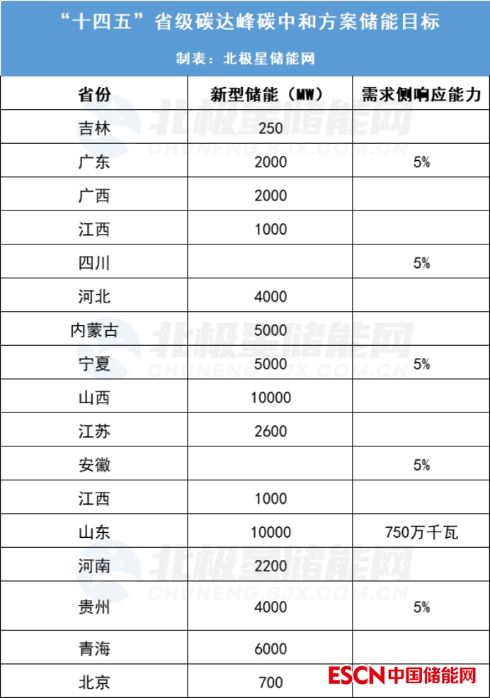 《北京市碳達(dá)峰實(shí)施方案》大力發(fā)展新能源、新材料、新能源汽車、氫能、儲能等產(chǎn)業(yè)。到2025年,太陽能、風(fēng)電總裝機(jī)容量達(dá)到280萬千瓦,新能源和可再生能源供暖面積達(dá)到1.45億平方米左右,新型儲能裝機(jī)容量達(dá)到70萬千瓦,電網(wǎng)高峰負(fù)荷削峰能力達(dá)到最高用電負(fù)荷3%—5%。