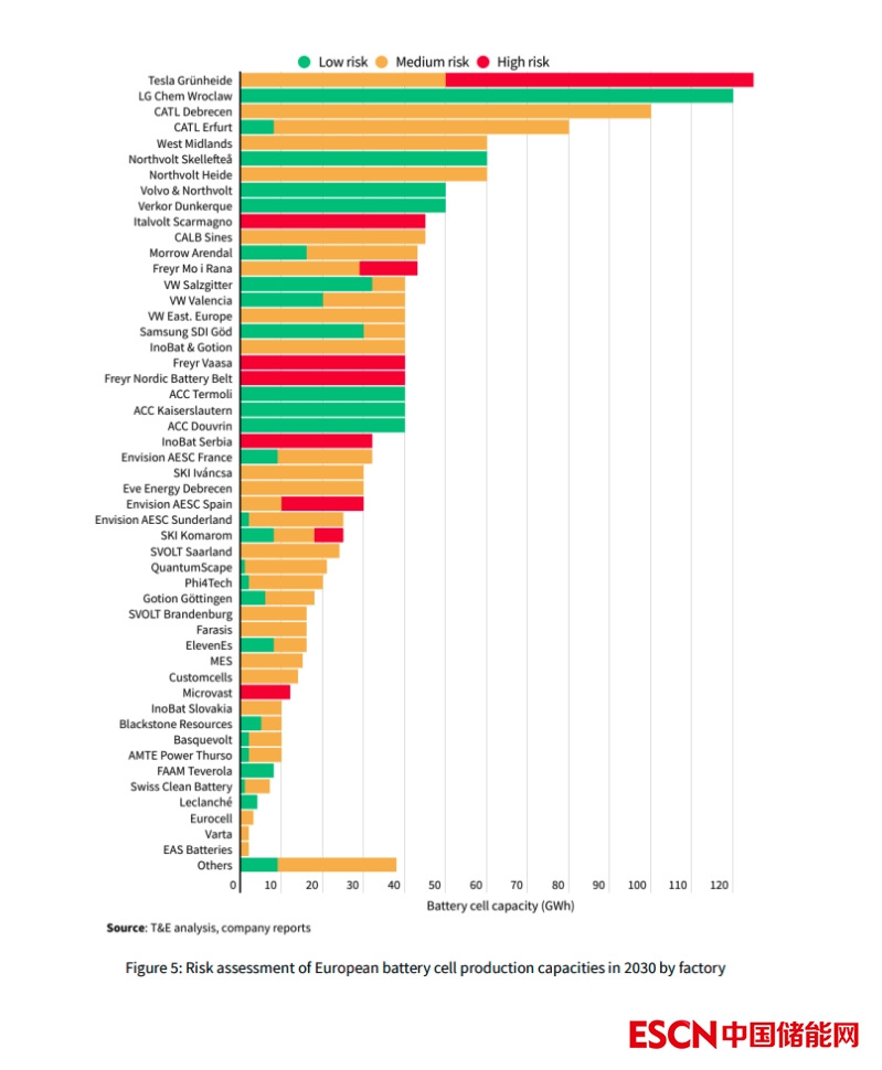 到2030年歐洲各家電池生產(chǎn)工廠生產(chǎn)能力風(fēng)險(xiǎn)評(píng)估