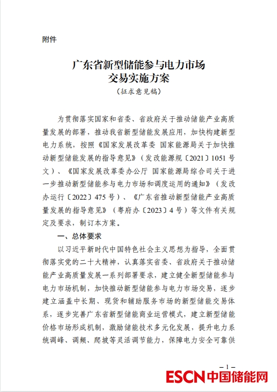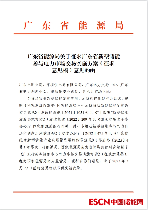 中國儲能網(wǎng)訊:近日,廣東省能源局發(fā)布了《關(guān)于征求廣東省新型儲能參與電力市場交易實施方案(征求意見稿)意見的函》,隨函發(fā)布了《廣東省新型儲能參與電力市場交易實施方案(征求意見稿)》(以下簡稱《方案》)。