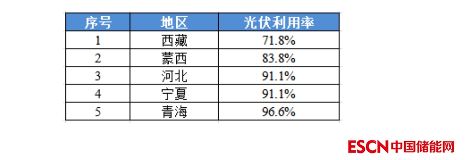2023年1月,光伏利用率最低的五個(gè)地區(qū)分別為: