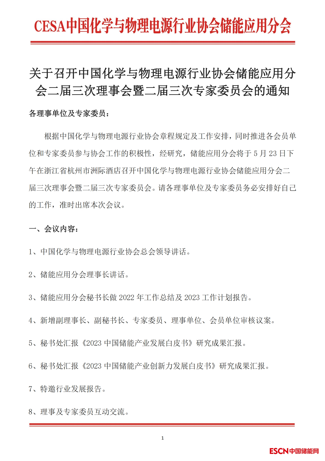 關(guān)于召開中國化學(xué)與物理電源行業(yè)協(xié)會儲能應(yīng)用分會二屆三次理事會暨二屆三次專家委員會的通知