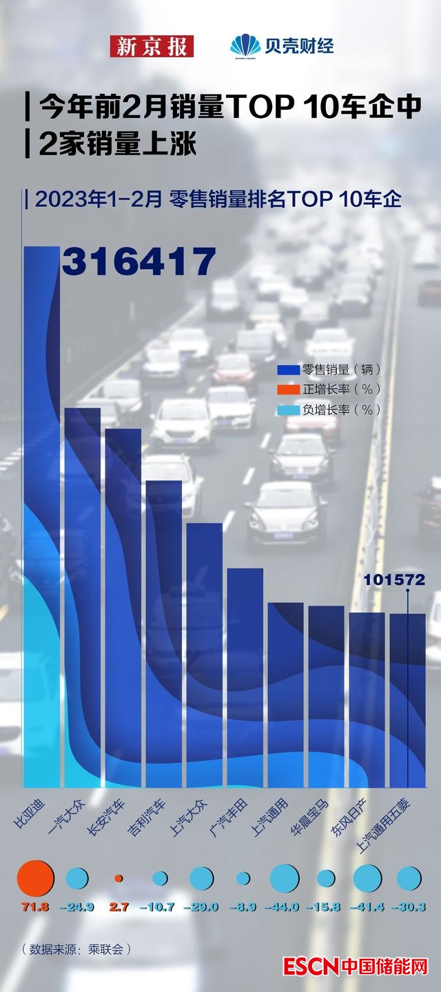 據(jù)乘聯(lián)會統(tǒng)計,今年前2個月零售銷量排名前十的汽車廠商中,8家銷量出現(xiàn)負(fù)增長,與去年同期相比,一汽大眾、上汽大眾、東風(fēng)日產(chǎn)等6家廠商銷售降幅進(jìn)一步擴(kuò)大。去年號稱“銷售王”的比亞迪,開年以來增速放緩,前兩個月累計銷量同比增長71.8%,而去年同期增速達(dá)到196.3%。