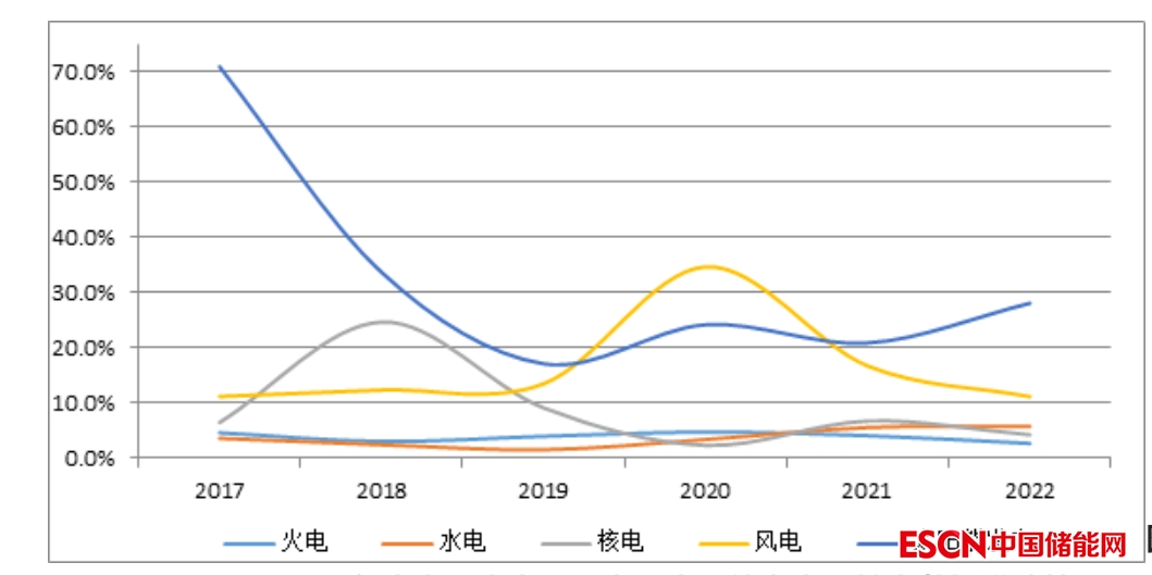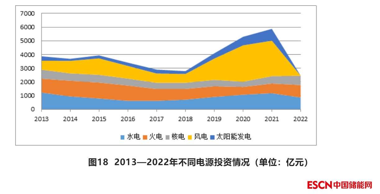 從裝機(jī)增速看,2022年,太陽能發(fā)電裝機(jī)以28.1%的速度大幅增長,風(fēng)電裝機(jī)增速回落到同2017年相同的11.2%,核電同比增長4.3%,水電同比增長5.8%,火電同比增長2.7%。