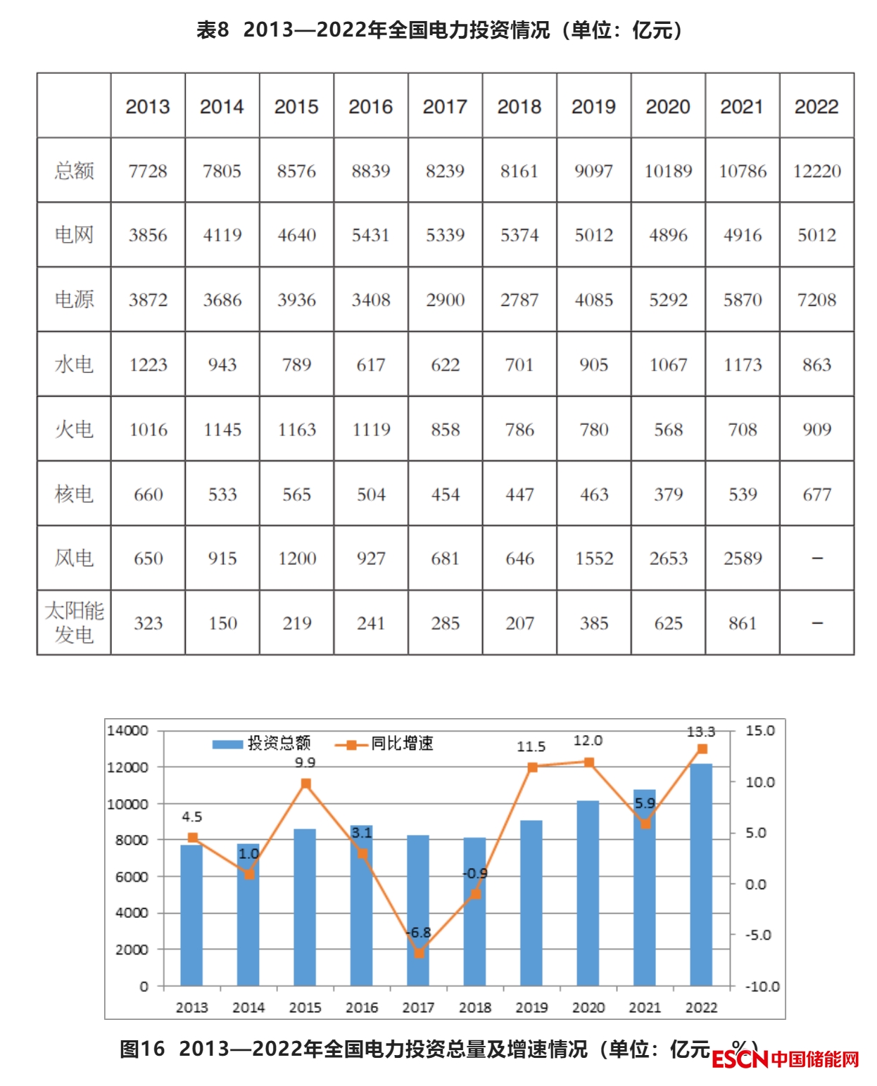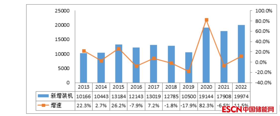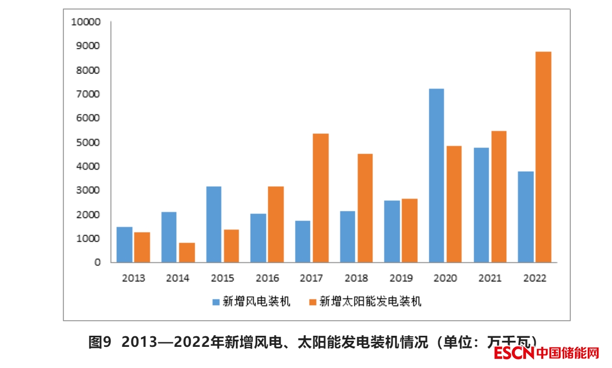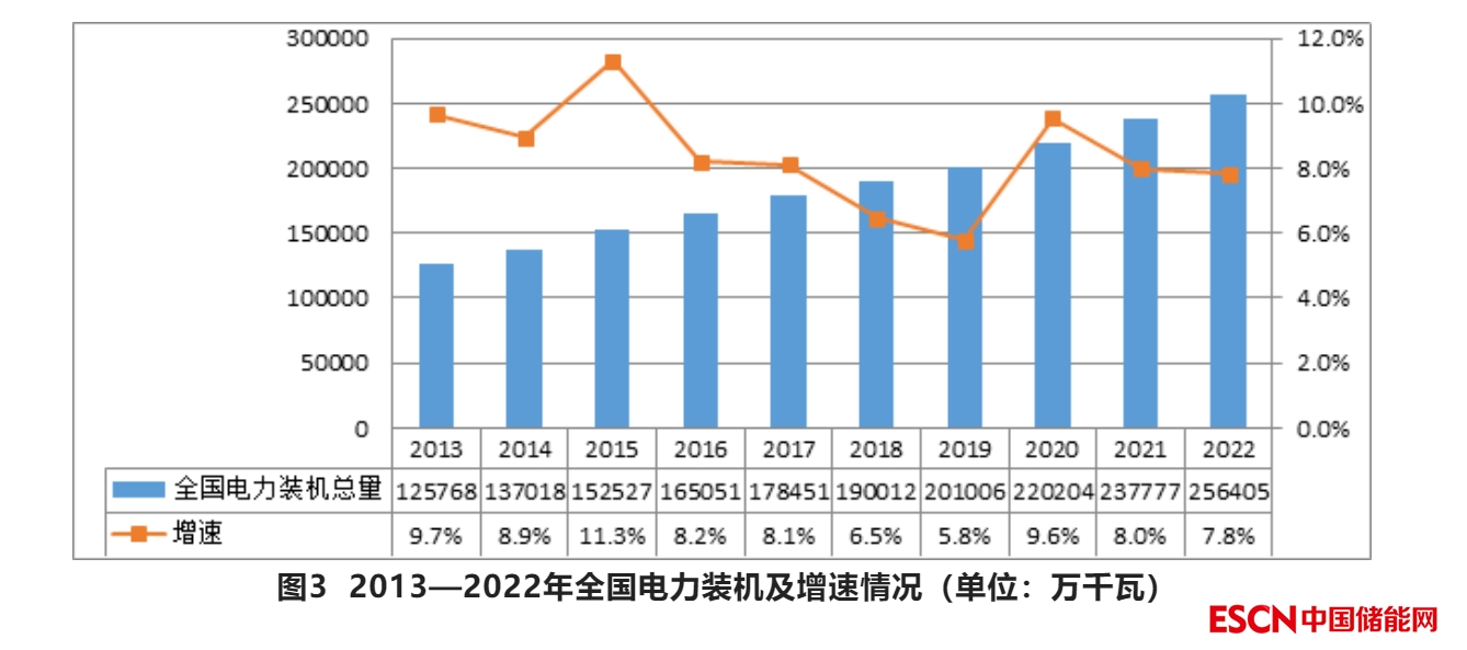 圖6 2013—2022年全國新增電力裝機(jī)及增速情況(單位:萬千瓦)