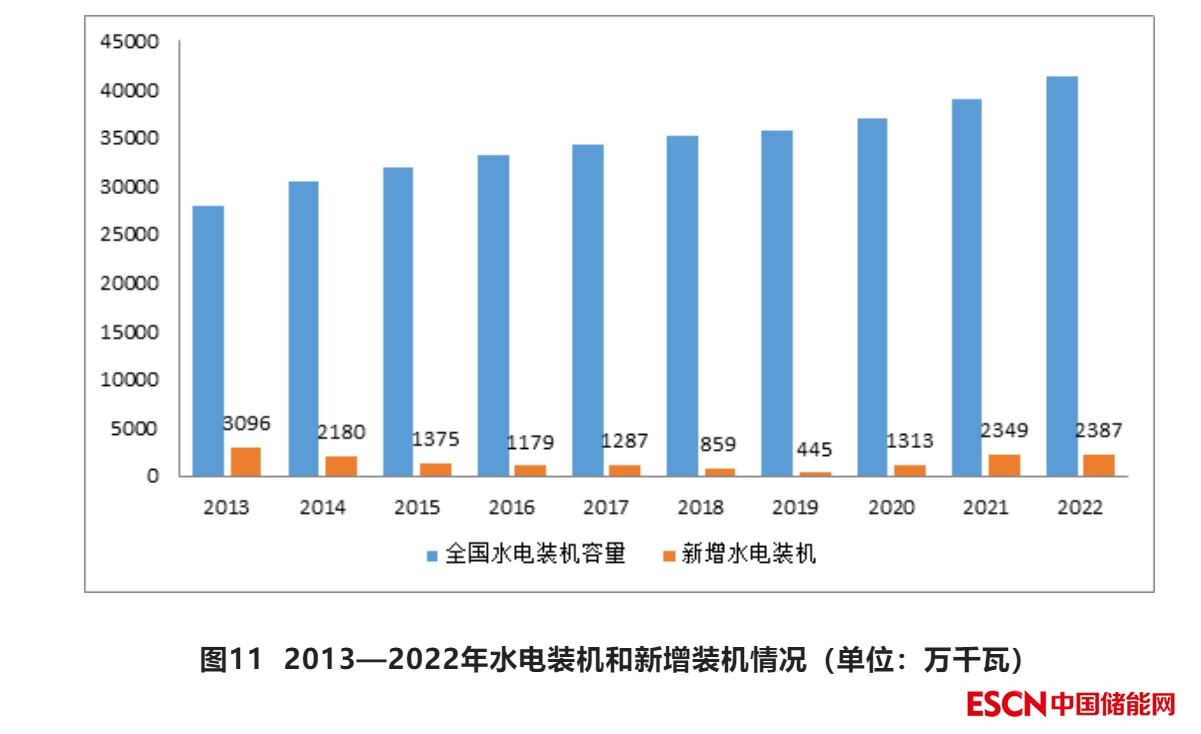 2022年,水電建設(shè)積極推進(jìn),常規(guī)水電新增1507萬千瓦。抽水蓄能建設(shè)明顯加快,全國新核準(zhǔn)抽水蓄能項目48個,裝機(jī)6890萬千瓦,已超過“十三五”時期全部核準(zhǔn)規(guī)模,全年新投產(chǎn)880萬千瓦,創(chuàng)歷史新高。主要有白鶴灘水電站16臺機(jī)組全部建成投產(chǎn),至此,長江干流上的6座巨型梯級水電站——烏東德、白鶴灘、溪洛渡、向家壩、三峽、葛洲壩,形成世界最大“清潔能源走廊”。