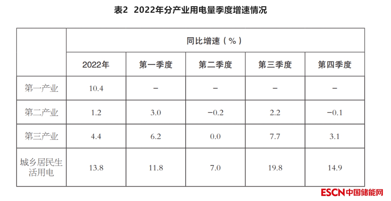 2022年,第一產(chǎn)業(yè)和城鄉(xiāng)居民生活用電量實現(xiàn)兩位數(shù)增長。第一產(chǎn)業(yè)用電量1146億千瓦時,同比增長10.4%;第二產(chǎn)業(yè)用電量57001億千瓦時,同比增長1.2%;第三產(chǎn)業(yè)用電量14859億千瓦時,同比增長4.4%;城鄉(xiāng)居民生活用電量13366億千瓦時,同比增長13.8%。