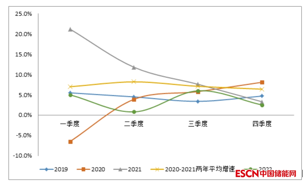 圖2 2019—2022年全國全社會用電量季度增速