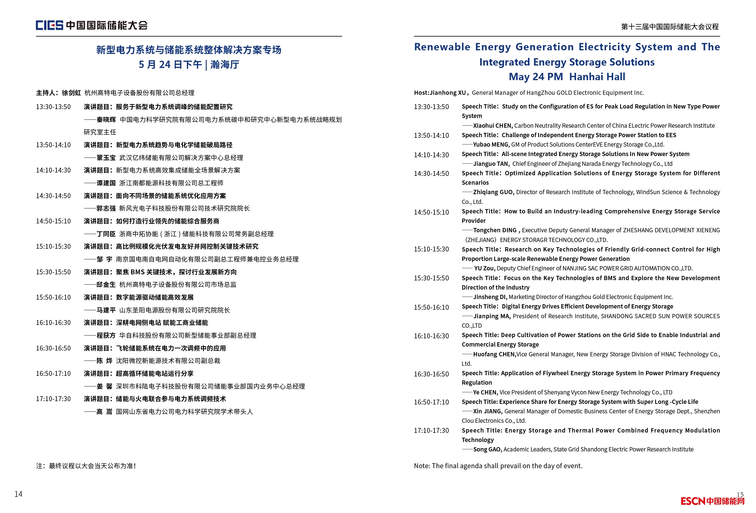 中國(guó)儲(chǔ)能網(wǎng)訊:由中國(guó)化學(xué)與物理電源行業(yè)協(xié)會(huì)主辦,中國(guó)化學(xué)與物理電源行業(yè)協(xié)會(huì)儲(chǔ)能應(yīng)用分會(huì)和中國(guó)儲(chǔ)能網(wǎng)聯(lián)合承辦,中國(guó)化學(xué)與物理電源行業(yè)協(xié)會(huì)儲(chǔ)能應(yīng)用分會(huì)專家委員會(huì)提供學(xué)術(shù)支持的第十三屆中國(guó)國(guó)際儲(chǔ)能大會(huì)將于2023年5月24-26日在杭州洲際酒店召開(kāi)。以下為新型電力系統(tǒng)與儲(chǔ)能整體解決方案專場(chǎng)議程(最終議程以活動(dòng)當(dāng)天公布為準(zhǔn)):