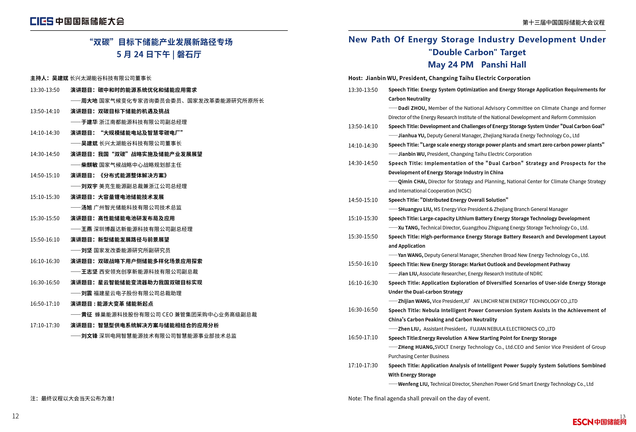 中國儲(chǔ)能網(wǎng)訊:由中國化學(xué)與物理電源行業(yè)協(xié)會(huì)主辦,中國化學(xué)與物理電源行業(yè)協(xié)會(huì)儲(chǔ)能應(yīng)用分會(huì)和中國儲(chǔ)能網(wǎng)聯(lián)合承辦,中國化學(xué)與物理電源行業(yè)協(xié)會(huì)儲(chǔ)能應(yīng)用分會(huì)專家委員會(huì)提供學(xué)術(shù)支持的第十三屆中國國際儲(chǔ)能大會(huì)將于2023年5月24-26日在杭州洲際酒店召開。以下為“雙碳”目標(biāo)下儲(chǔ)能產(chǎn)業(yè)發(fā)展新路徑專場(chǎng)議程(最終議程以活動(dòng)當(dāng)天公布為準(zhǔn)):