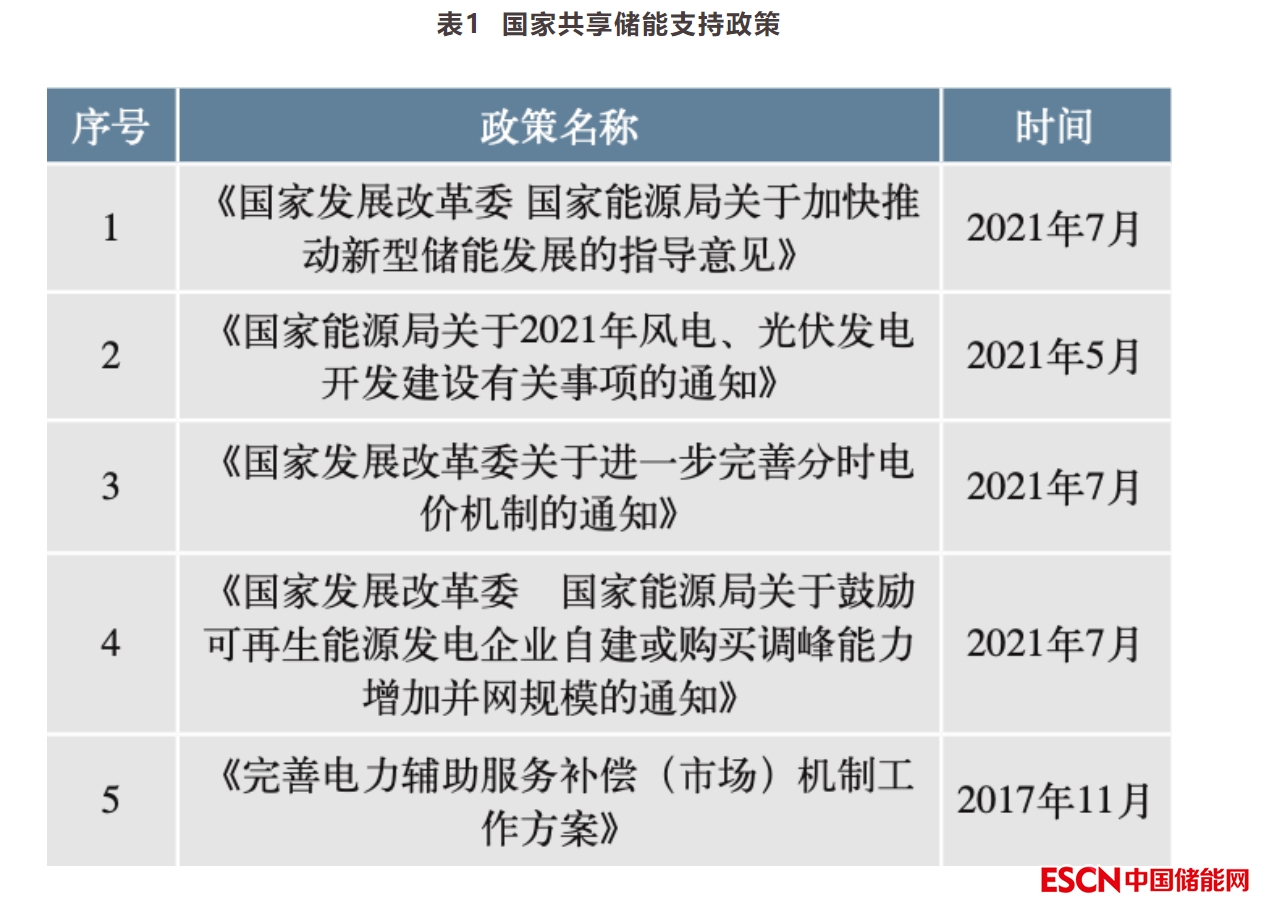 2017年,國家能源局印發(fā)的《完善電力輔助 服務(wù)補(bǔ)償(市場)機(jī)制工作方案》(國能發(fā)監(jiān)管〔2017〕67號)通知中指出:建立電力中長期交易 涉及的電力用戶參與電力輔助服務(wù)分擔(dān)共享機(jī)制。 開展電力用戶與發(fā)電企業(yè)中長期交易的地區(qū)應(yīng)建立 電力用戶參與電力輔助服務(wù)分擔(dān)共享機(jī)制。國家共 享儲能支持政策見表1。
