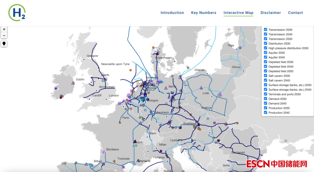 歐洲天然氣運(yùn)輸系統(tǒng)運(yùn)營(yíng)商網(wǎng)絡(luò) (European Network of Transmission System Operators for Gas,簡(jiǎn)稱 ENTSOG)、歐洲氫能骨干倡議(European Hydrogen Backbone)以及GIE、CEDEC、Eurogas、GEODE、GD4S等機(jī)構(gòu)啟動(dòng)了一個(gè)自下而上的過(guò)程,收集所有相關(guān)的氫能基礎(chǔ)設(shè)施項(xiàng)目,目的是將數(shù)據(jù)呈現(xiàn)在一個(gè)交互式、用戶友好且可供公眾訪問(wèn)的歐洲氫能地圖,供利益相關(guān)者和政策制定者使用。交互式氫能基礎(chǔ)設(shè)施地圖匯集了天然氣輸送系統(tǒng)運(yùn)營(yíng)商(TSO)、配送系統(tǒng)運(yùn)營(yíng)商、存儲(chǔ)系統(tǒng)運(yùn)營(yíng)商和液化天然氣系統(tǒng)運(yùn)營(yíng)商的氫能視角和項(xiàng)目,以及在整個(gè)價(jià)值鏈上開(kāi)發(fā)聯(lián)合體項(xiàng)目的第三方推動(dòng)者。