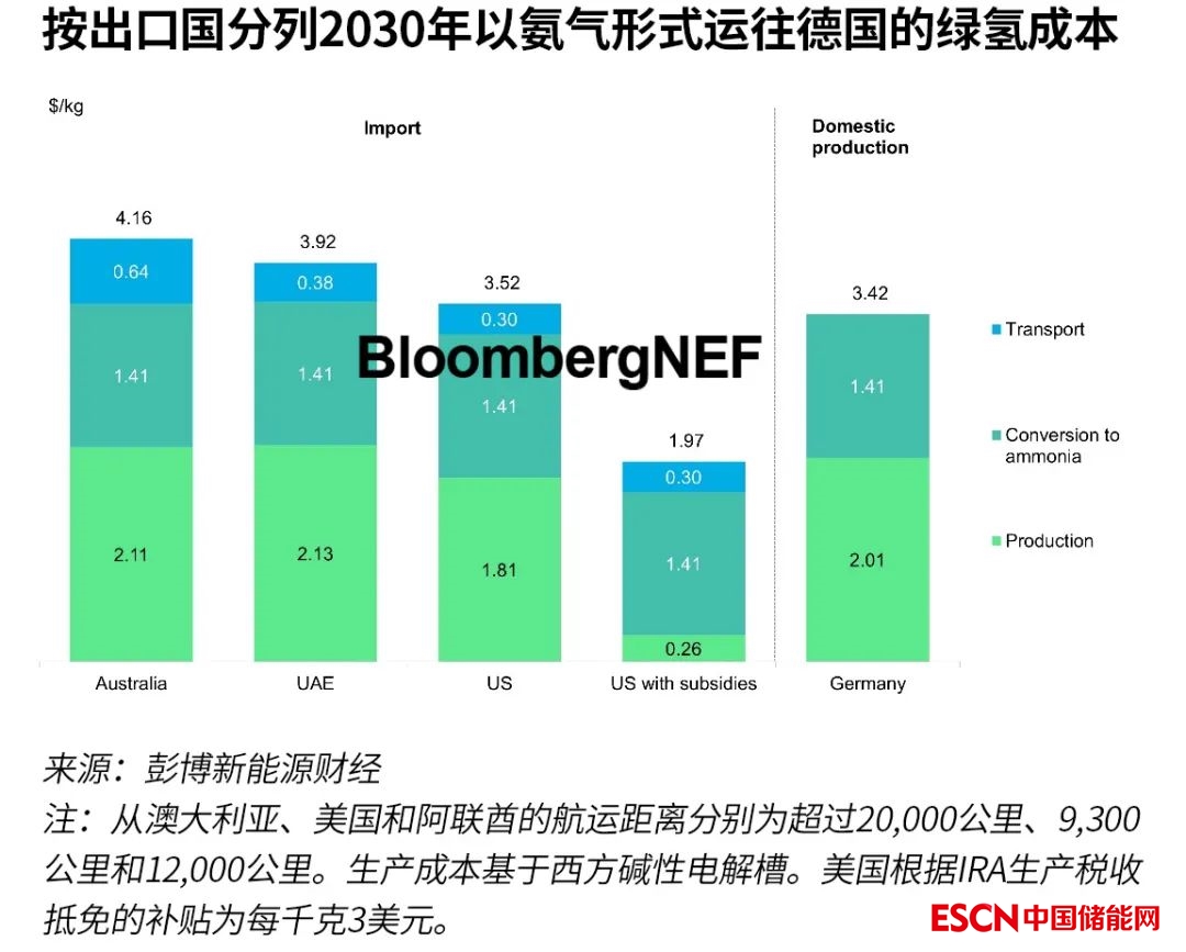 2030年阿聯(lián)酋向德國出口綠氨的價(jià)格相比美國獲補(bǔ)貼出口價(jià)格的溢價(jià)幅度