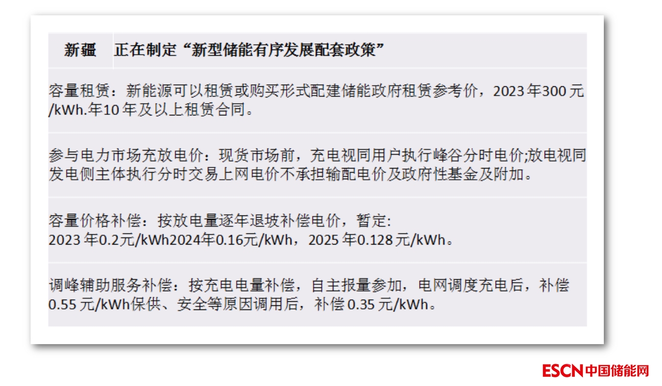 新疆正在制定“新型儲能有序發(fā)展配套政策”。從目前征求意見稿透露的信息來看,新疆將出臺的政策將涉及儲能應(yīng)用的多個方面,包括新能源儲能協(xié)同、獨立儲能市場價格機制、共享租賃制度、獨立儲能容量電價補償?shù)取H绔@出臺,將對新疆的儲能應(yīng)用,尤其是獨立共享儲能應(yīng)用產(chǎn)生至關(guān)重要的影響。