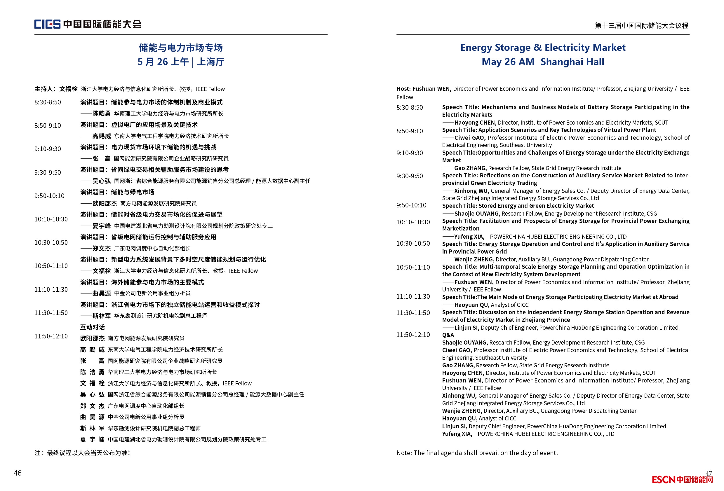 中國儲能網(wǎng)訊:由中國化學(xué)與物理電源行業(yè)協(xié)會主辦,中國化學(xué)與物理電源行業(yè)協(xié)會儲能應(yīng)用分會和中國儲能網(wǎng)聯(lián)合承辦,中國化學(xué)與物理電源行業(yè)協(xié)會儲能應(yīng)用分會專家委員會提供學(xué)術(shù)支持的第十三屆中國國際儲能大會將于2023年5月24-26日在杭州洲際酒店召開。以下為儲能與電力市場專場議程(最終議程以活動當(dāng)天公布為準(zhǔn)):