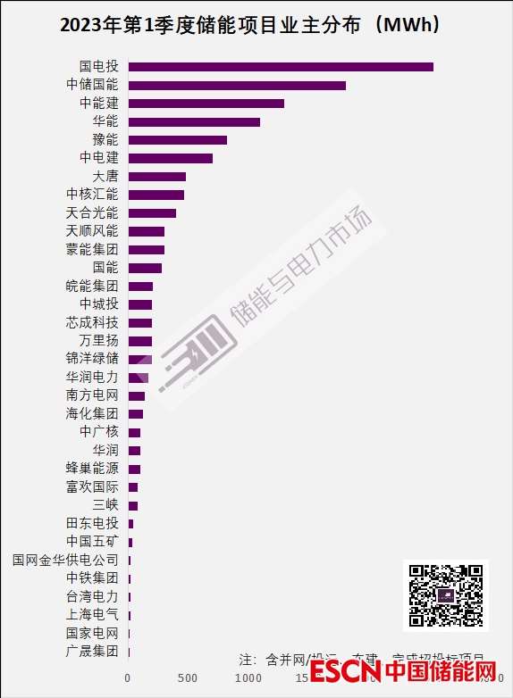 從業(yè)主分布上看,國(guó)電投儲(chǔ)能業(yè)務(wù)開(kāi)展最多,2023年第1季度超過(guò)2.5GWh的項(xiàng)目更新?tīng)顟B(tài),進(jìn)入實(shí)施階段。
