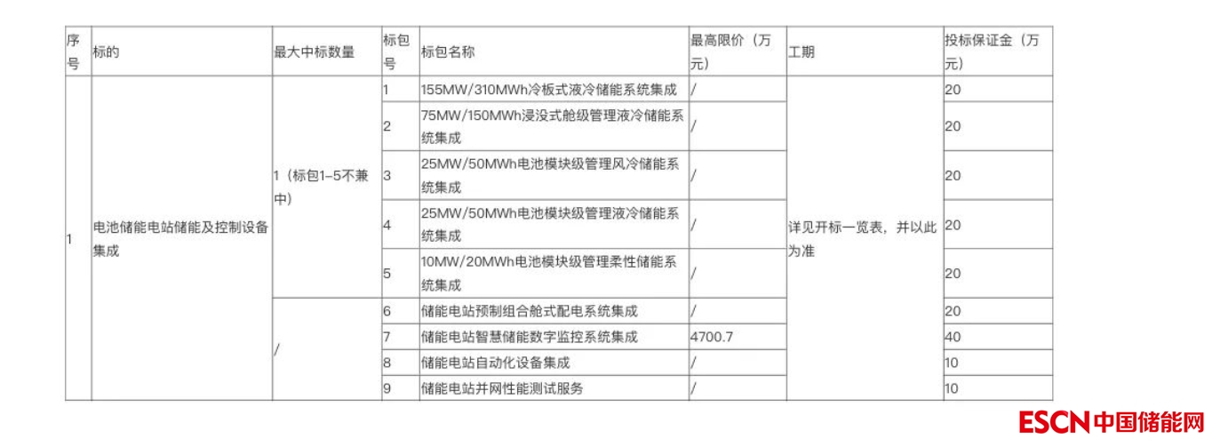 (1)電池儲能電站儲能及控制設(shè)備集成(155MW/310MWh冷板式液冷儲能系統(tǒng)集成)、電池儲能電站儲能及控制設(shè)備集成(75MW/150MWh浸沒式艙級管理液冷儲能系統(tǒng)集成)、電池儲能電站儲能及控制設(shè)備集成(25MW/50MWh電池模塊級管理風(fēng)冷儲能系統(tǒng)集成)、電池儲能電站儲能及控制設(shè)備集成(25MW/50MWh電池模塊級管理液冷儲能系統(tǒng)集成):