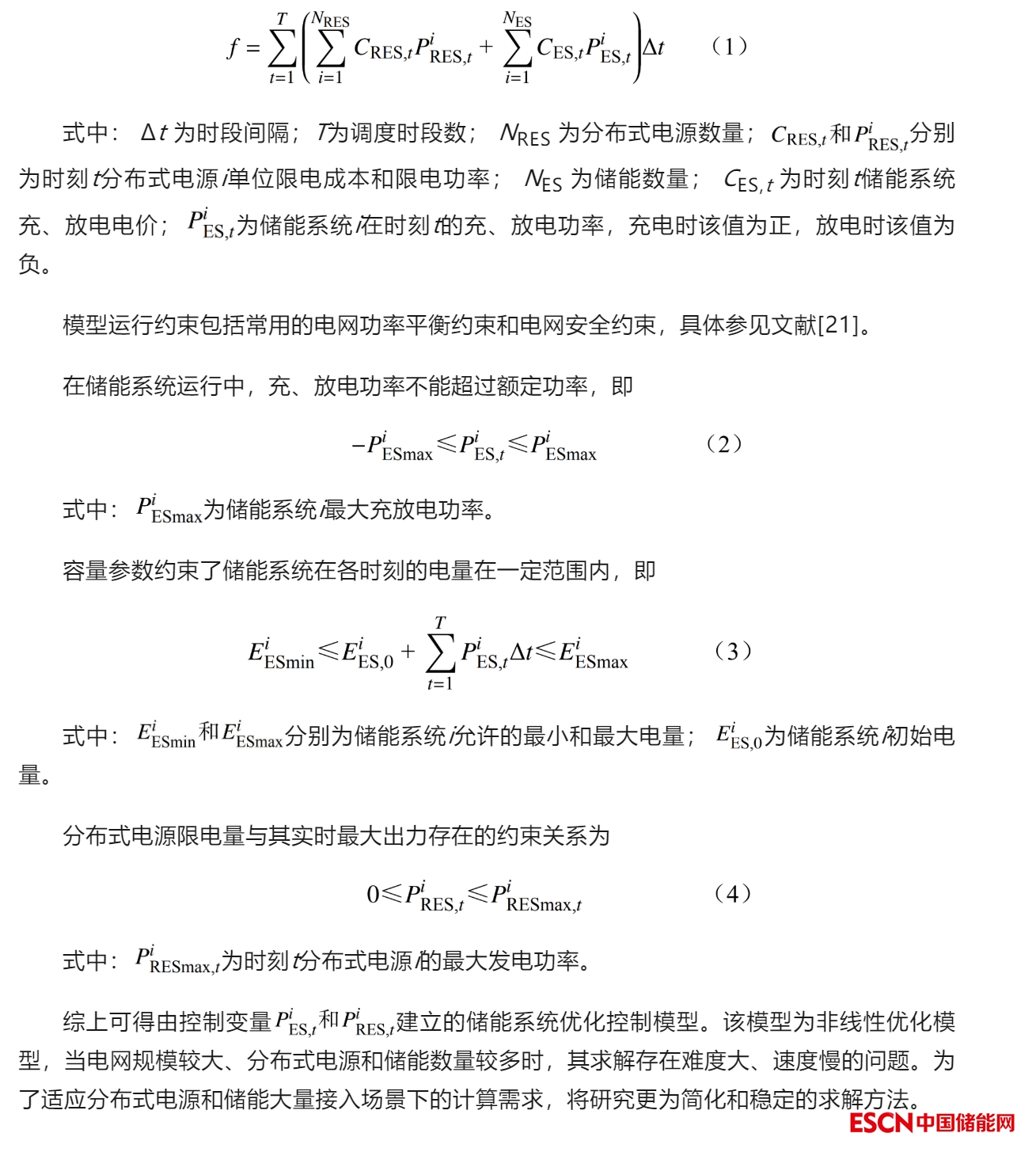 摘要:在中國提升新能源消納能力、助力碳達峰碳中和目標實現(xiàn)的背景下,提出了一種基于解耦的儲能參與新能源消納的優(yōu)化控制方法。針對儲能系統(tǒng)優(yōu)化控制非線性模型求解難題,提出了基于解耦的線性簡化方法,利用枚舉優(yōu)化和迭代潮流計算結(jié)合方法,建立了滿足提升新能源消納目標和電網(wǎng)安全運行約束的儲能運行緊致約束條件。算例測試顯示,基于解耦的線性簡化模型與原有非線性模型保持一致,降低了高階優(yōu)化控制模型的求解難度,保障了儲能提升新能源消納的快速可靠決策,提升了新能源和儲能綜合運行效益。