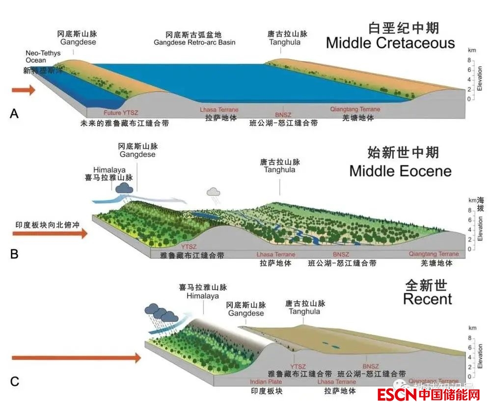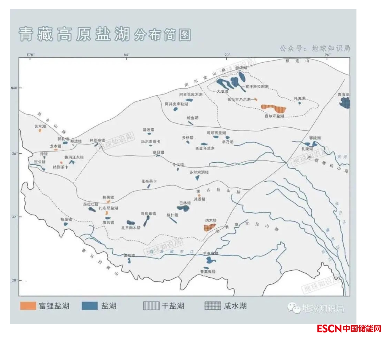 由于青藏高原隆升阻擋了印度洋的暖濕氣流,使得高原內(nèi)部變得干旱寒冷,在中部西部和北部形成了一大堆鹽湖,其中富鋰鹽湖就有80多個,它們的氯化鋰(LiCl)含量大于每升0.3克,鋰離子濃度大于每升0.05克,都超過了鋰礦的工業(yè)品位。