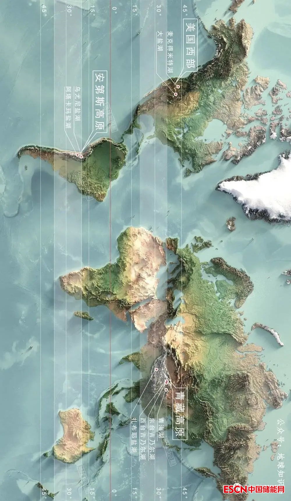 由于這種礦床的形成條件十分獨(dú)特,在全球主要分布在三大鹽湖集中區(qū):南美安第斯高原、美國西部高原和中國青藏高原。這3個地方全都是板塊碰撞的產(chǎn)物,也都有活躍的地質(zhì)活動,玻利維亞阿塔卡馬鹽湖、美國大鹽湖、中國的扎布耶鹽湖都是其中的代表。