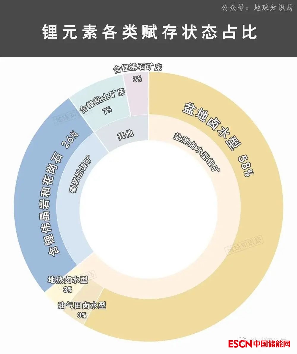 人類能利用的鋰元素主要藏在鹽湖、巖石和沉積盆地的粘土中,這就決定了3種主要鋰礦類型:鹽湖鹵水型鋰礦、偉晶巖型鋰礦和沉積型鋰礦,我們簡稱為鹽湖鋰礦、硬巖鋰礦和沉積鋰礦。