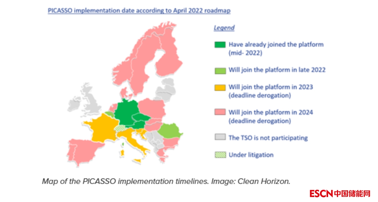 在整個歐洲,已經有26個國家表示有興趣加入PICASSO平臺,每個國家都有自己的時間表,如下圖所示。下面以德國為例,看一下歐洲二級儲備市場的開放情況。