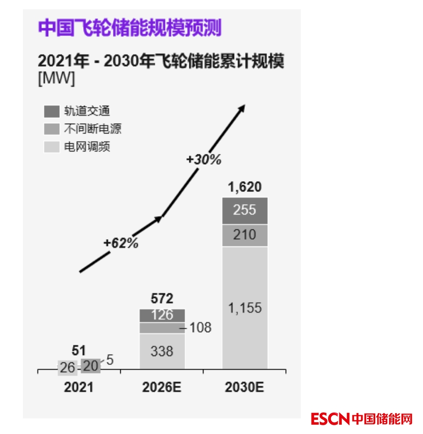 中國(guó)儲(chǔ)能網(wǎng)訊:科爾尼中性測(cè)算,到2026年飛輪儲(chǔ)能累計(jì)裝機(jī)量可增長(zhǎng)至572MW,到2030年可進(jìn)一步增長(zhǎng)至1.62GW。