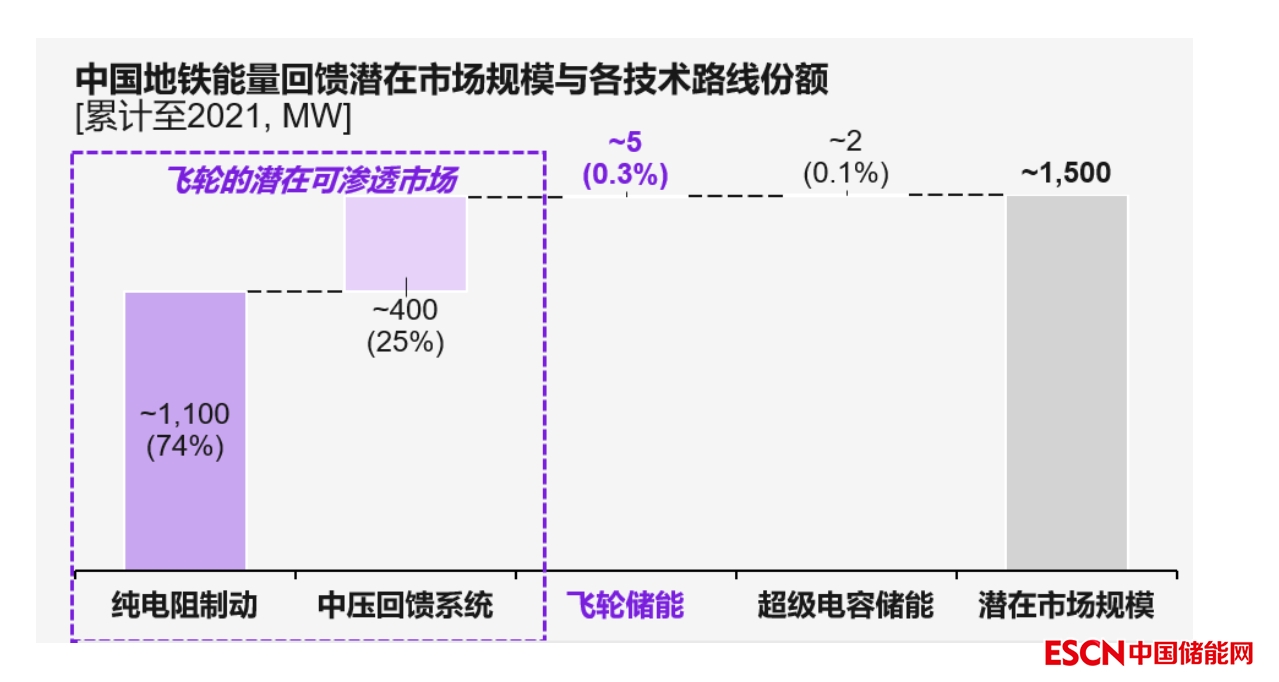 地鐵能量回饋屬于趨勢(shì)向好的培育型市場(chǎng),盡管目前飛輪儲(chǔ)能在中國(guó)地鐵能量回饋場(chǎng)景的累計(jì)裝機(jī)規(guī)模僅為5MW,但其潛在市場(chǎng)規(guī)模(裝機(jī)量)可超過(guò)1500MW(如圖5)。飛輪在該場(chǎng)景中提升滲透率存在三大抓手:其一,初始成本下降、投資回報(bào)周期縮短;第二,市場(chǎng)對(duì)全生命周期成本的認(rèn)可度提升;第三,重大事故防范能力提升。