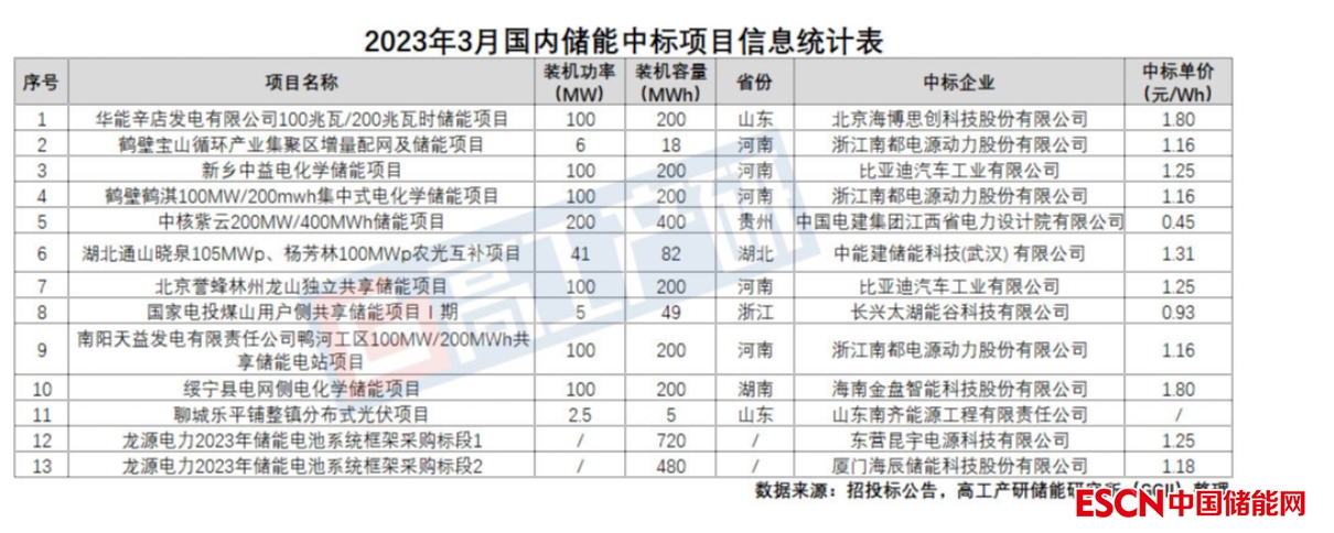 中國(guó)儲(chǔ)能網(wǎng)訊:不完全統(tǒng)計(jì),3月共有13個(gè)儲(chǔ)能項(xiàng)目公布中標(biāo)結(jié)果,規(guī)模合計(jì)0.86GW/2.95GWh。