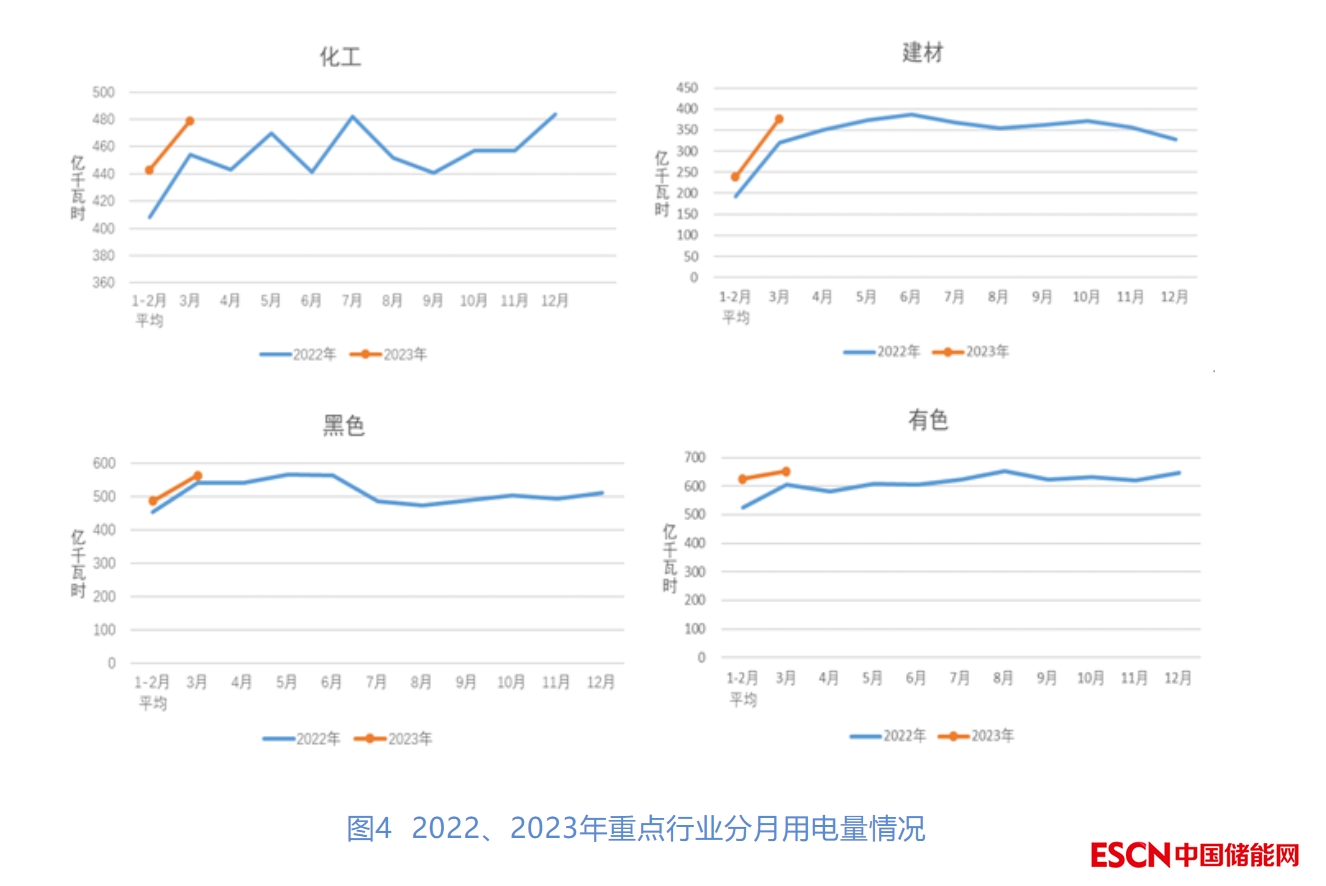 3月份,化工行業(yè)用電量479億千瓦時,同比增長3.9%;建材行業(yè)用電量377億千瓦時,同比增長17.7%;黑色金屬冶煉行業(yè)用電量562億千瓦時,同比增長5.0%;有色金屬冶煉行業(yè)用電量652億千瓦時,同比增長2.8%。