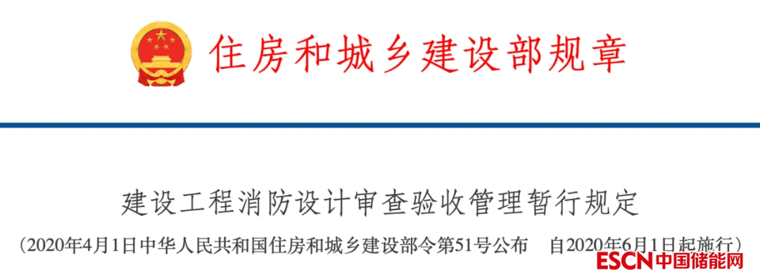 提到,對(duì)按照國(guó)家工程建設(shè)消防技術(shù)標(biāo)準(zhǔn)需要進(jìn)行消防設(shè)計(jì)的建設(shè)工程,實(shí)行建設(shè)工程消防設(shè)計(jì)審查驗(yàn)收制度。建設(shè)工程應(yīng)嚴(yán)格按照工程建設(shè)審批制度要求辦理相關(guān)手續(xù)。電化學(xué)儲(chǔ)能電站若符合《建設(shè)工程消防設(shè)計(jì)審查驗(yàn)收管理暫行規(guī)定》(以下簡(jiǎn)稱《暫行規(guī)定》)第十四條下列12條情形之一的屬于特殊建設(shè)工程,其申請(qǐng)消防設(shè)計(jì)審查驗(yàn)收且要件齊全,應(yīng)依法受理;