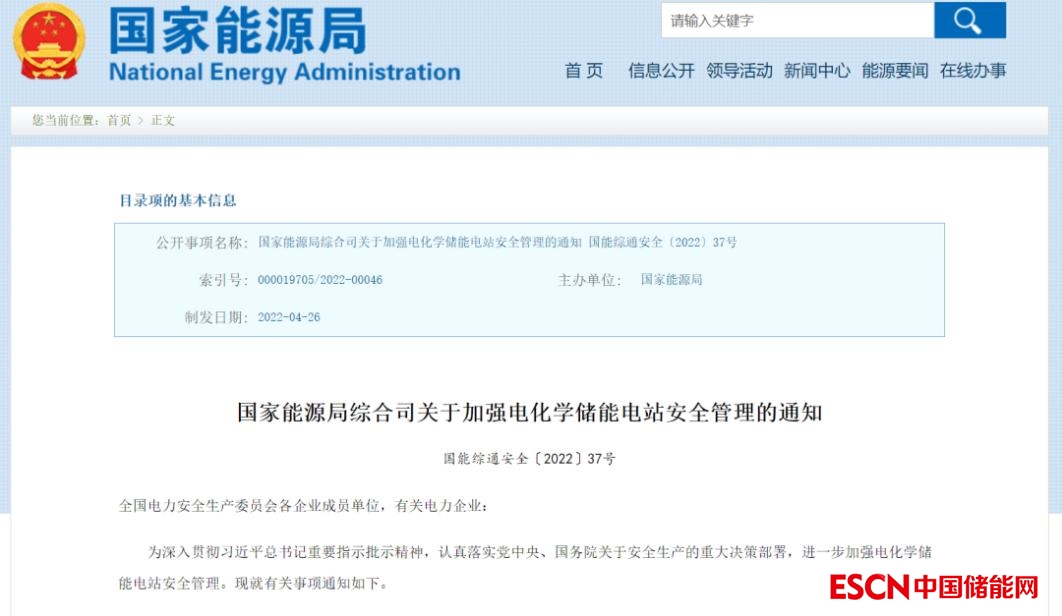 5月25日,國家能源局綜合司發(fā)布的《關(guān)于加強電化學儲能電站安全管理的通知》,從高度重視電化學儲能電站安全管理、加強電化學儲能電站規(guī)劃設(shè)計安全管理等七個方面對電化學儲能電站安全提出了具體措施。