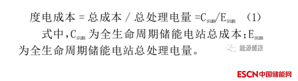 全生命周期度電成本是目前儲能常用的成本衡量指標。全生命周期的度電成本也稱平準化成本(LCOE),計算公式為儲能電站總成本/儲能電站總處理電量,指在全生命周期內(nèi)對儲能電站的總成本和發(fā)電量進行平準化計算得到的儲能成本(何穎源等,2019)。儲能電站總處理電量是儲能裝置每年的儲存輸送返回電網(wǎng)或應(yīng)用端的發(fā)電量。度電成本在評估儲能技術(shù)經(jīng)濟性方面具有重要指導(dǎo)意義。其計算公式如下: