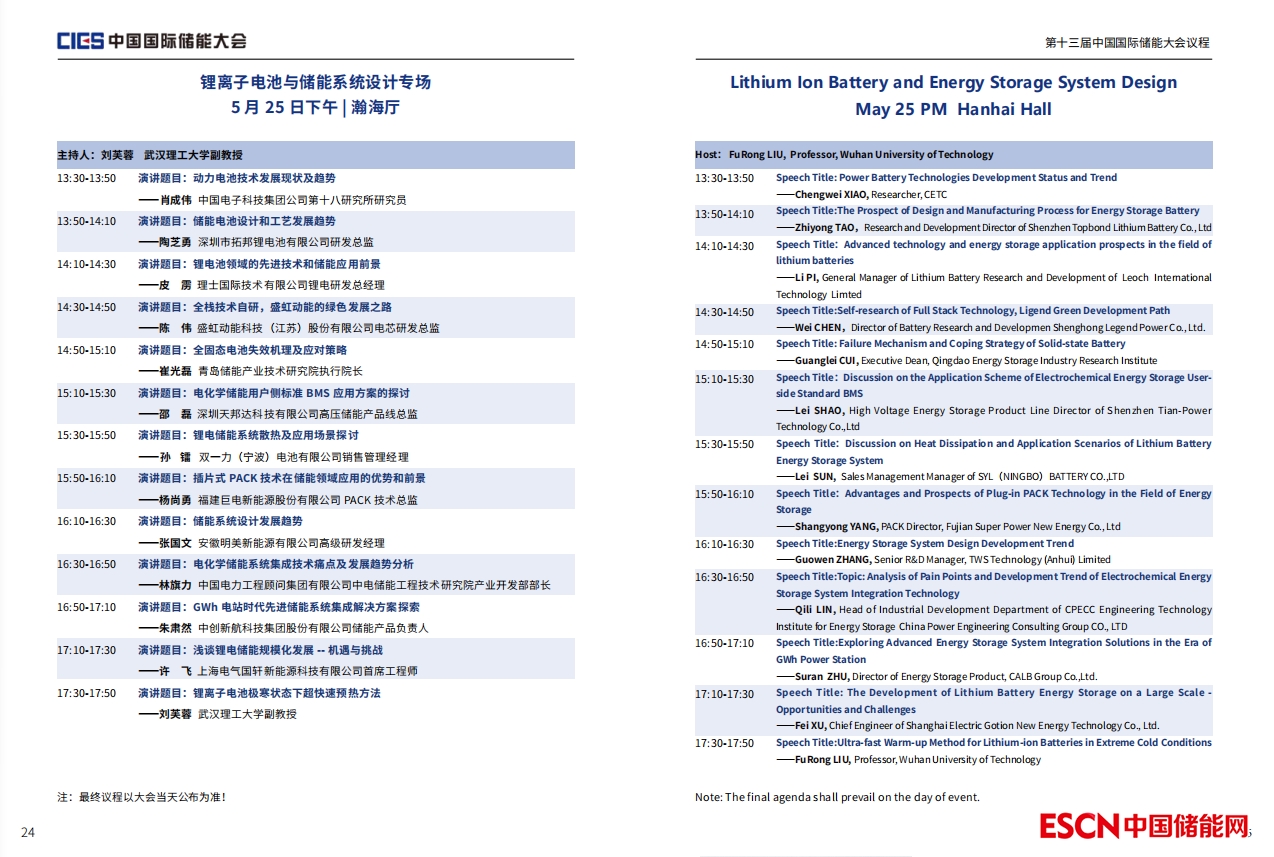 大會安排有開幕式暨院士/專家主題報告、“雙碳”目標下儲能產業(yè)發(fā)展新路徑專場、新型電力系統(tǒng)與儲能系統(tǒng)整體解決方案專場、儲能安全與系統(tǒng)集成專場、獨立共享儲能電站專場、新型儲能系統(tǒng)集成解決方案專場、用戶側儲能與虛擬電廠專場、儲能安全與消防系統(tǒng)專場、長時儲能技術及應用專場、儲能檢測、認證與標準專場、鋰離子電池與儲能系統(tǒng)設計專場、智能微電網(wǎng)及分布式能源專場、儲能資本市場專場(上下)、儲能與電力市場專場、中國西北儲能市場專場、溫控系統(tǒng)及電氣設備專場等17個專場論壇。