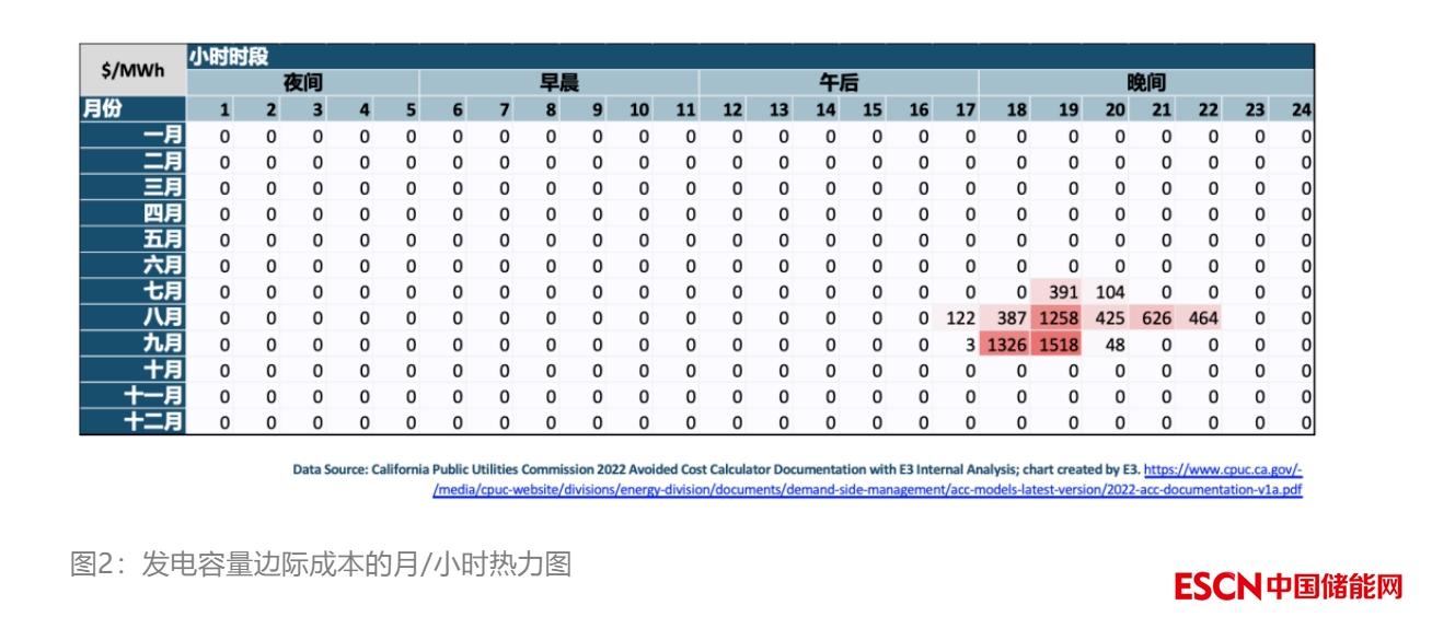 將輸配電容量的邊際成本分攤到導致需求的各小時內,可以估算出增加或減少負荷所產生的輸配電容量邊際成本。圖3顯示了加州輸配電容量邊際成本的計算結果。
