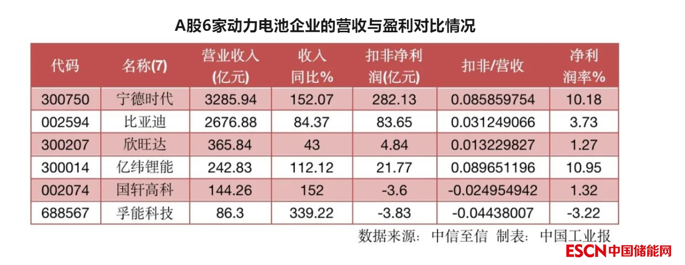 值得注意的是,動力電池企業(yè)有各種補貼收入,若扣除這些非主營收入,按照扣非凈利潤與營業(yè)收入的比值計算,則上述上市企業(yè)的主營業(yè)務凈利率會普遍降低。