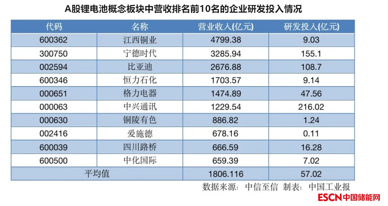 在上述366家中,營收規(guī)模排名前10的企業(yè),其主業(yè)領域既包含動力電池制造,還包含稀有金屬開采冶煉、石化、科創(chuàng)、基建、電器等多元化主業(yè),平均營收規(guī)模1806.116億元,平均科研投入57.02億元。