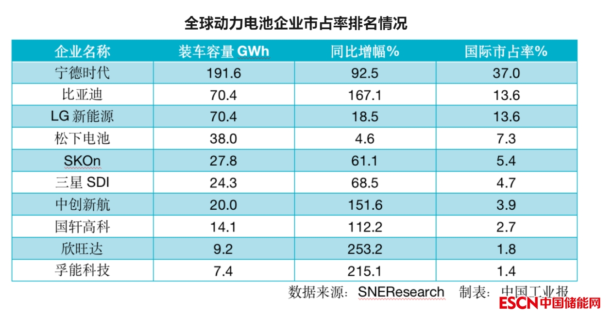 根據(jù)韓國市場調研機構SNEResearch最新發(fā)布的數(shù)據(jù),寧德時代、比亞迪、中創(chuàng)新航、國軒高科、欣旺達、孚能科技,6家中國企業(yè)的裝機總量為3127GWh,全球市占率為60.4%。