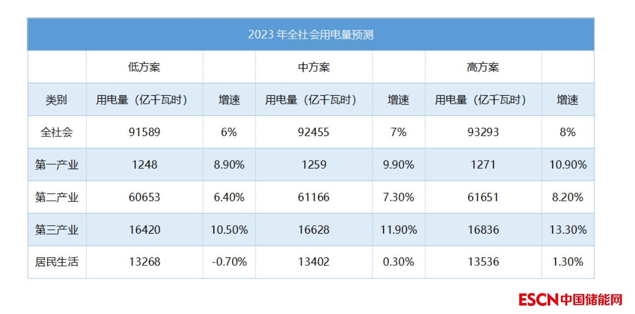 綜合各方因素,國網(wǎng)能源研究院預計2023年全國全社會用電量為9.16-9.33萬億kWh,比上年增長6.0%-8.0%。
