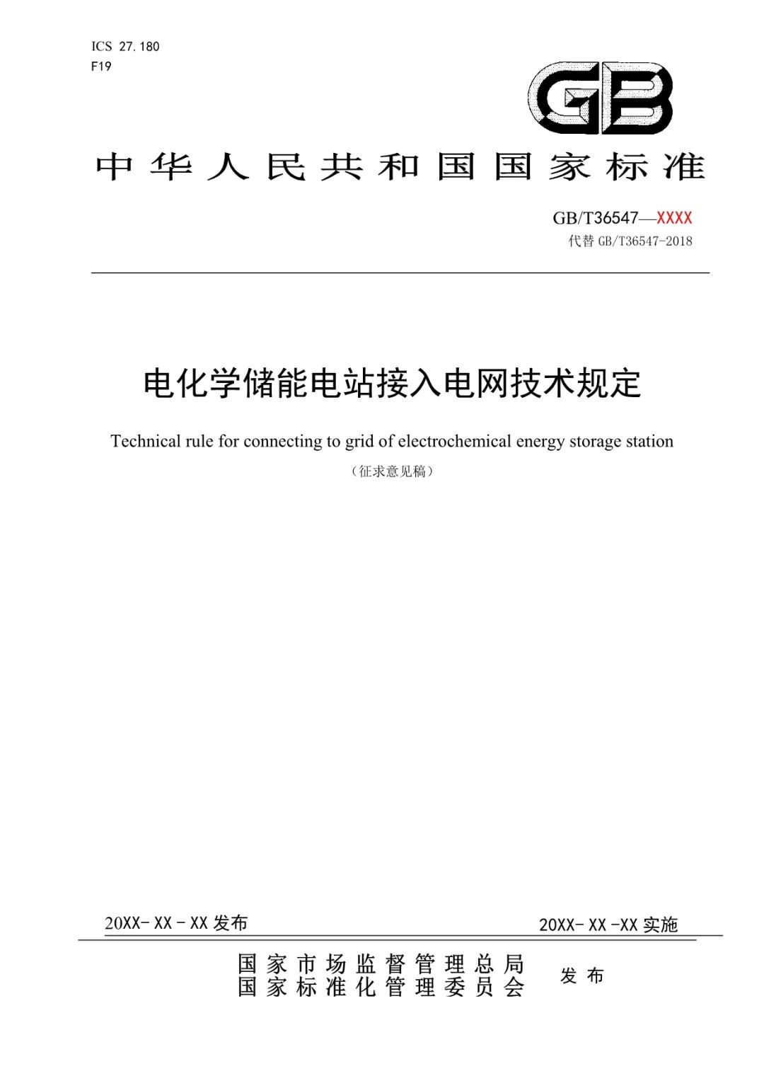 中國儲(chǔ)能網(wǎng)訊:4月24日,《電化學(xué)儲(chǔ)能電站接入電網(wǎng)技術(shù)規(guī)定》、《電化學(xué)儲(chǔ)能電站接入電網(wǎng)運(yùn)行控制規(guī)范》國家標(biāo)準(zhǔn)征求意見。