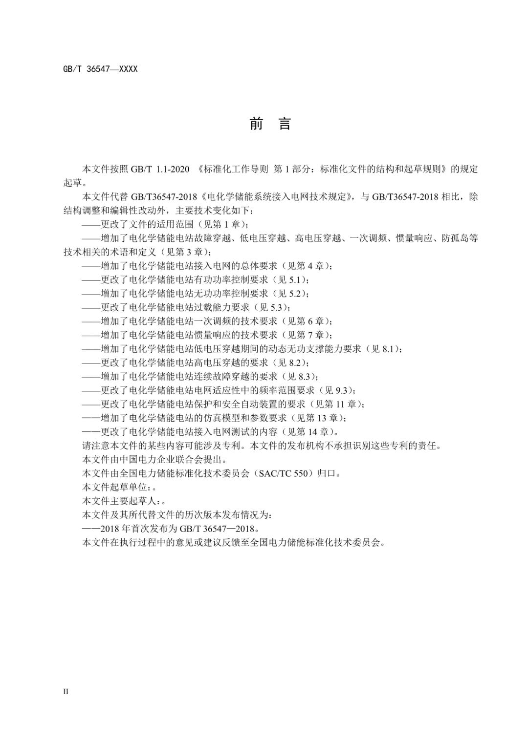 2.新舊版對比:增加了電化學(xué)儲(chǔ)能電站故障穿越、低電壓穿越、高電壓穿越、一次調(diào)頻、慣量響應(yīng)、防孤島等技術(shù)相關(guān)的術(shù)語和定義。增加了電化學(xué)儲(chǔ)能電站接入電網(wǎng)的總體要求;更改了電化學(xué)儲(chǔ)能電站有功功率控制、無功功率控制等要求。