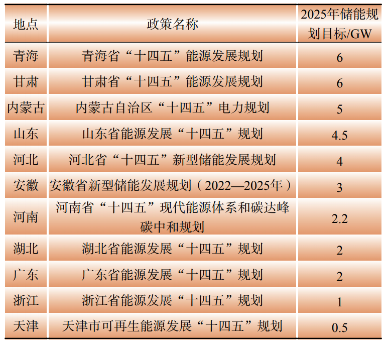 表3 中國各省市儲能規(guī)劃