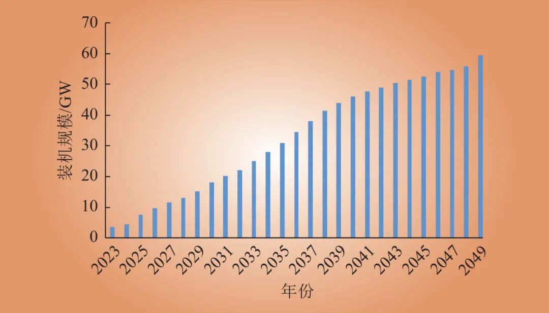 2021年12月,澳大利亞能源市場運營機構(gòu)(AEMO)發(fā)布2022年綜合能源計劃(ISP2022),計劃到2049年儲能規(guī)模接近60 GW,預(yù)測規(guī)模如圖3所示[24]。其中,戶用型儲能(含光儲)占比70%,大型電池儲能占比20%,抽蓄等其他儲能占比10%。