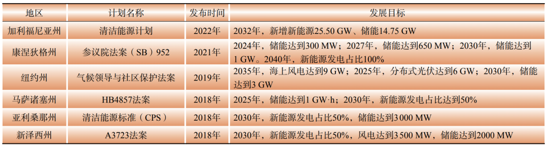 表1 美國部分州清潔能源發(fā)展計劃