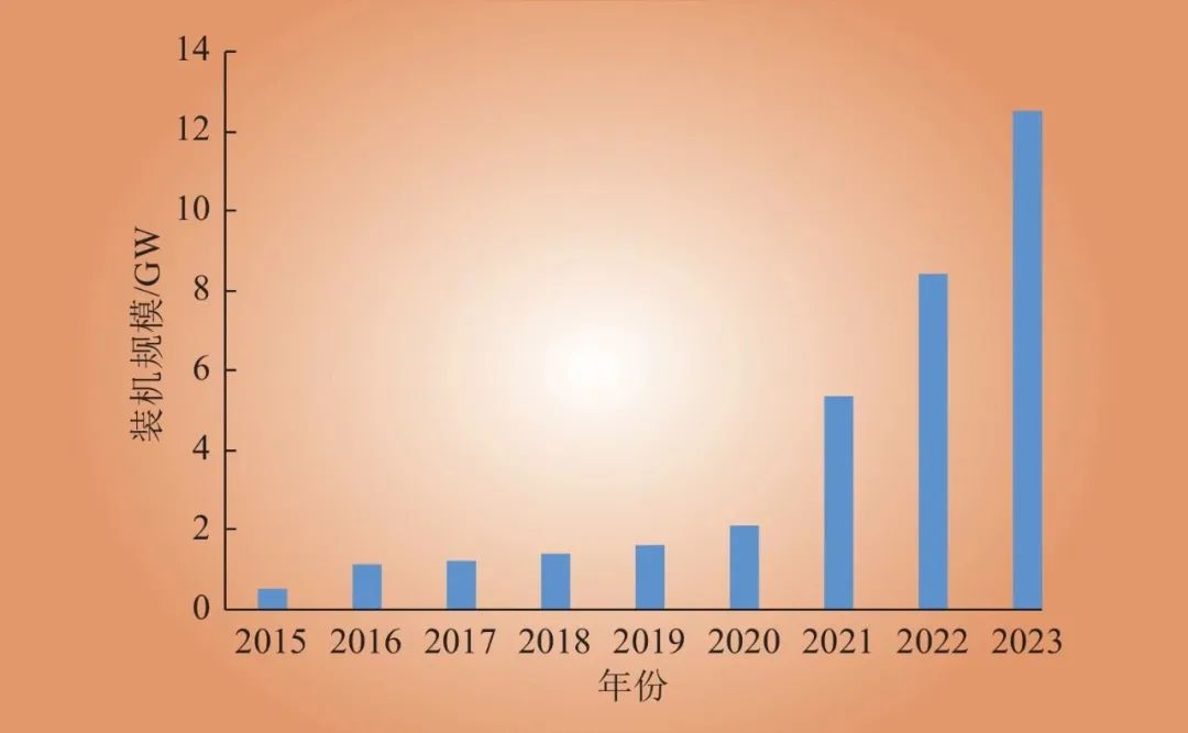 Fig.1 Large-scale energy storage cumulative power capacity from 2015 to 2023 of the United States