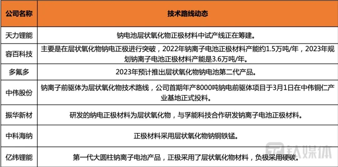 部分采用層狀氧化物路線的企業(yè)動態(tài)