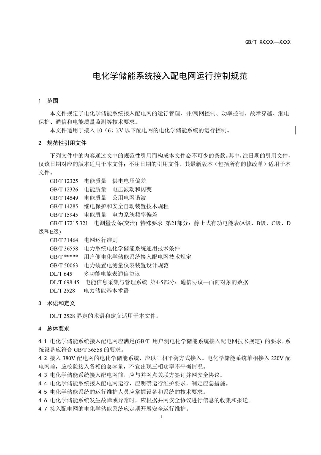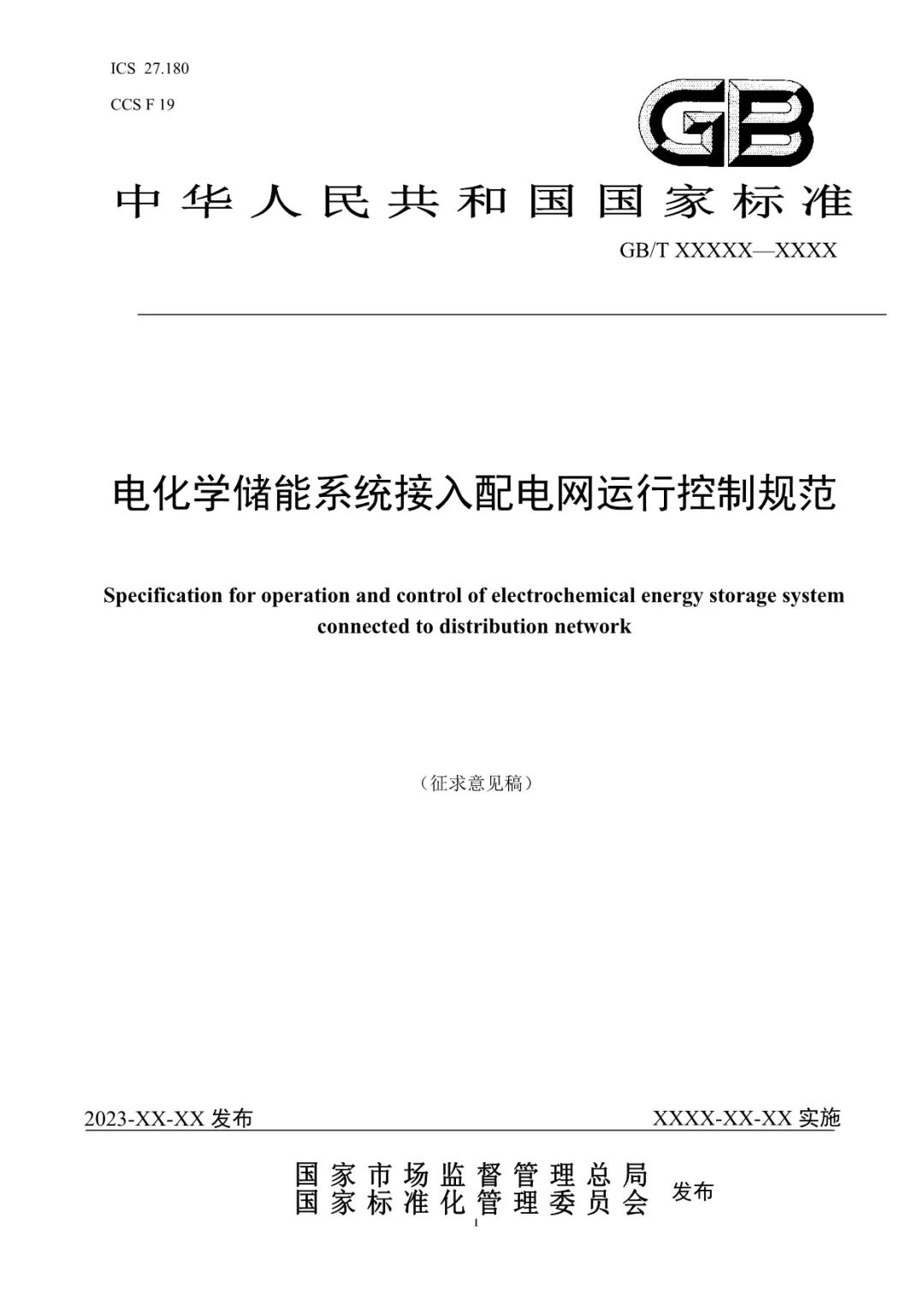 《電化學(xué)儲能系統(tǒng)接入配電網(wǎng)運行控制規(guī)范》及編制說明原文如下: