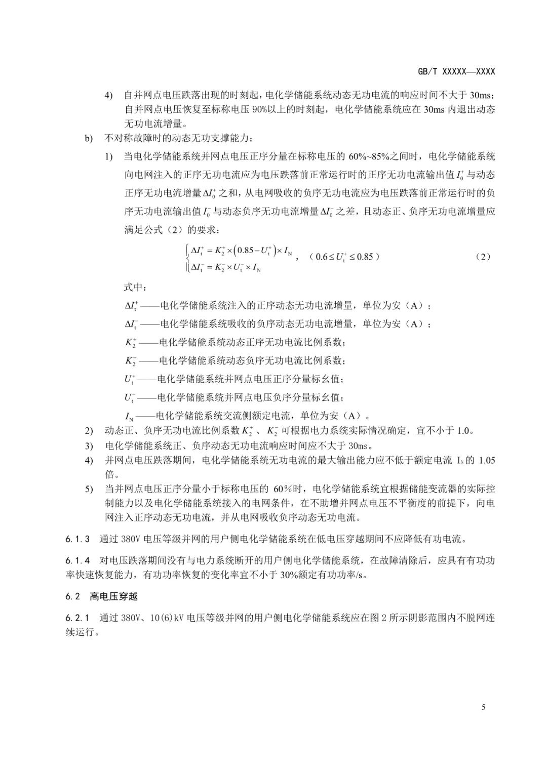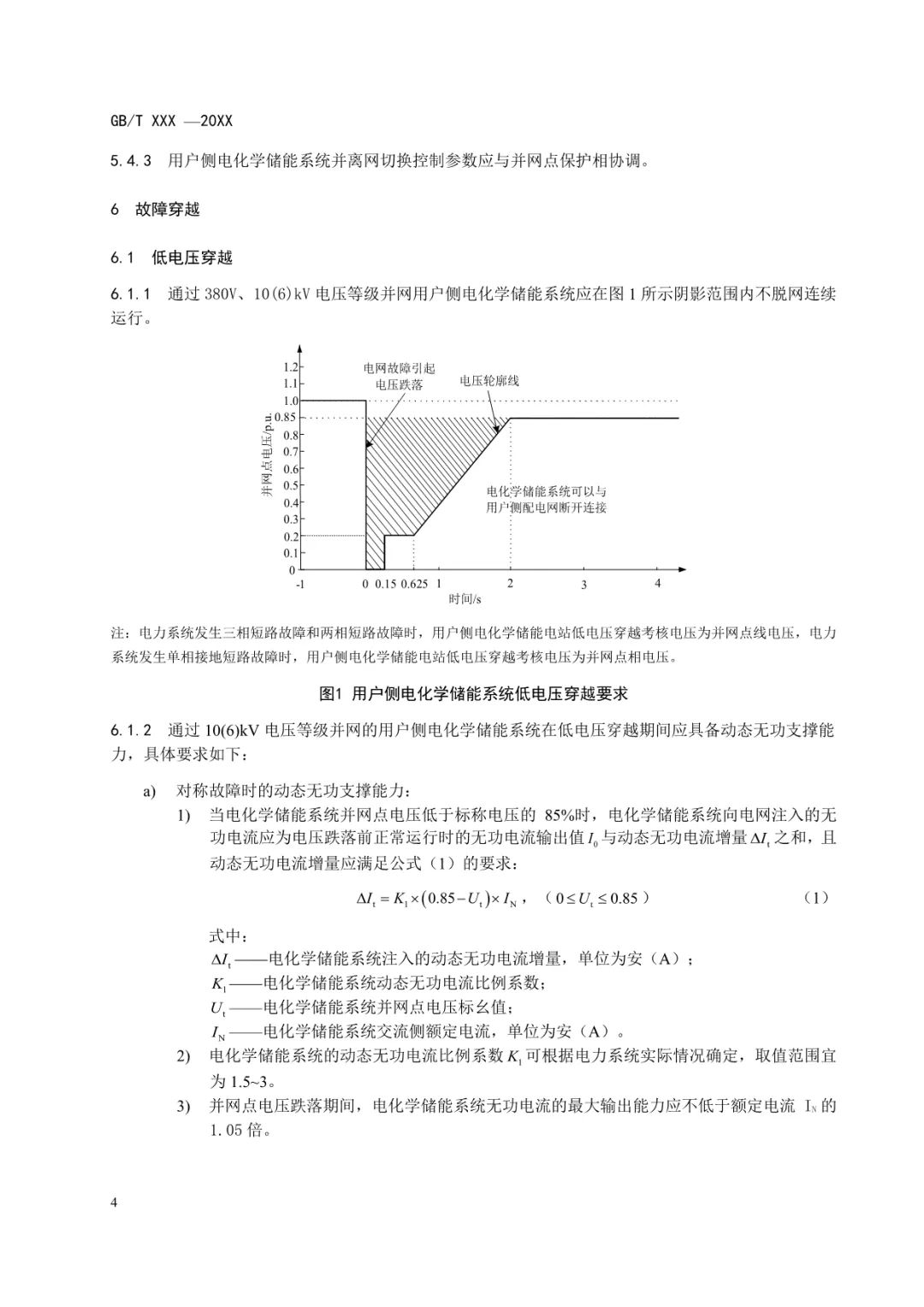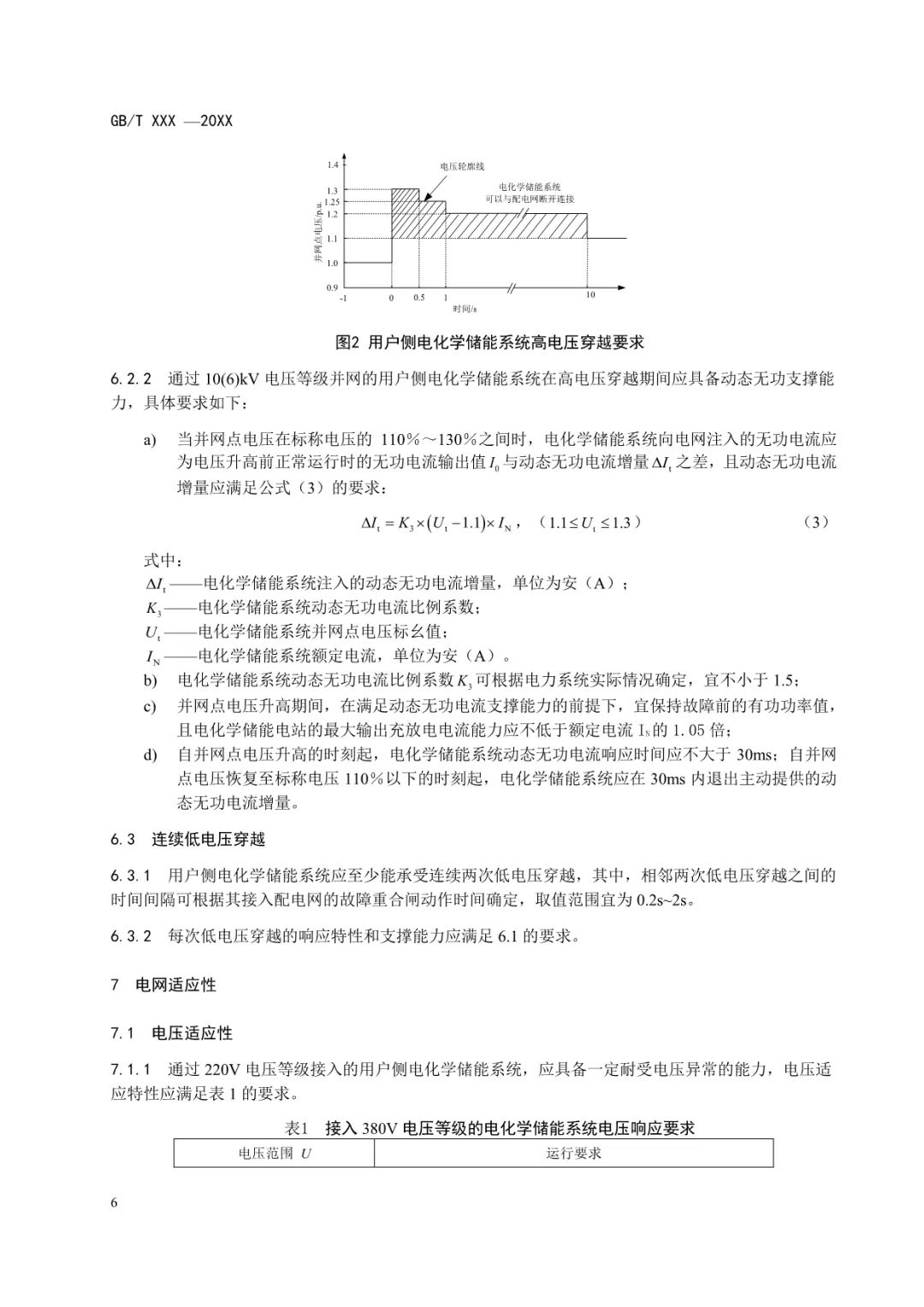 規(guī)定了用戶側(cè)電化學(xué)儲能系統(tǒng)正常穩(wěn)定運行區(qū)間為標(biāo)稱電壓的85%~110%,低于85%時符合低電壓穿越的規(guī)定,高于110%時符合高電壓穿越的規(guī)定。