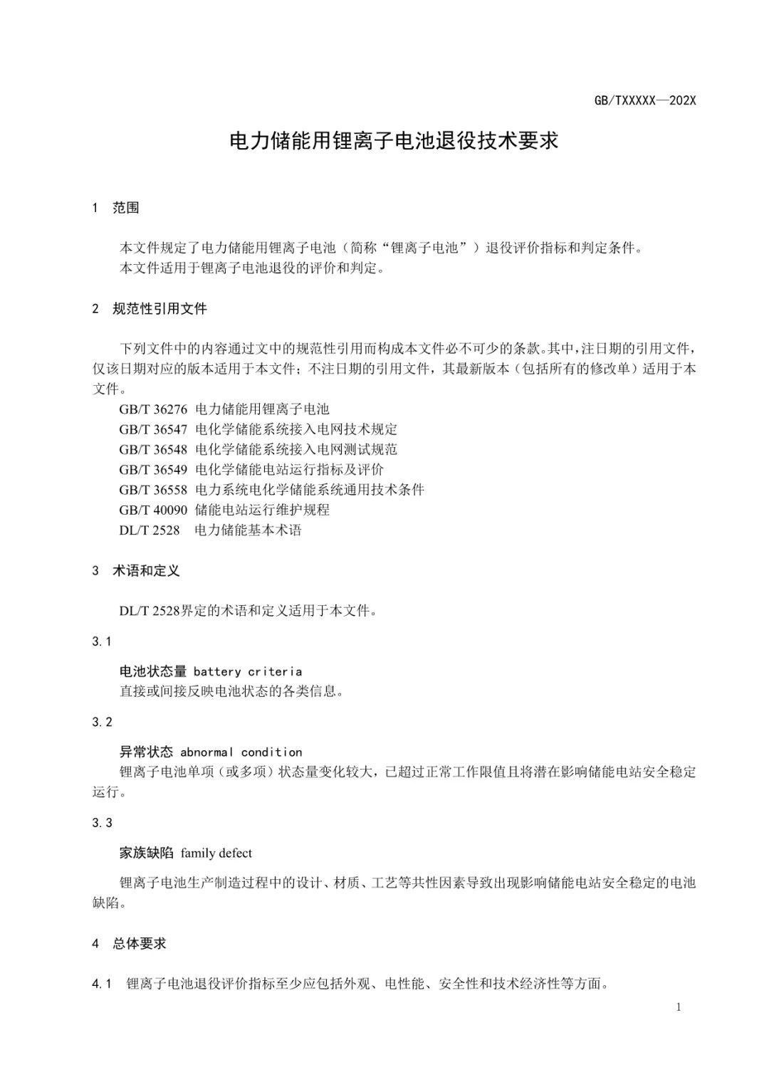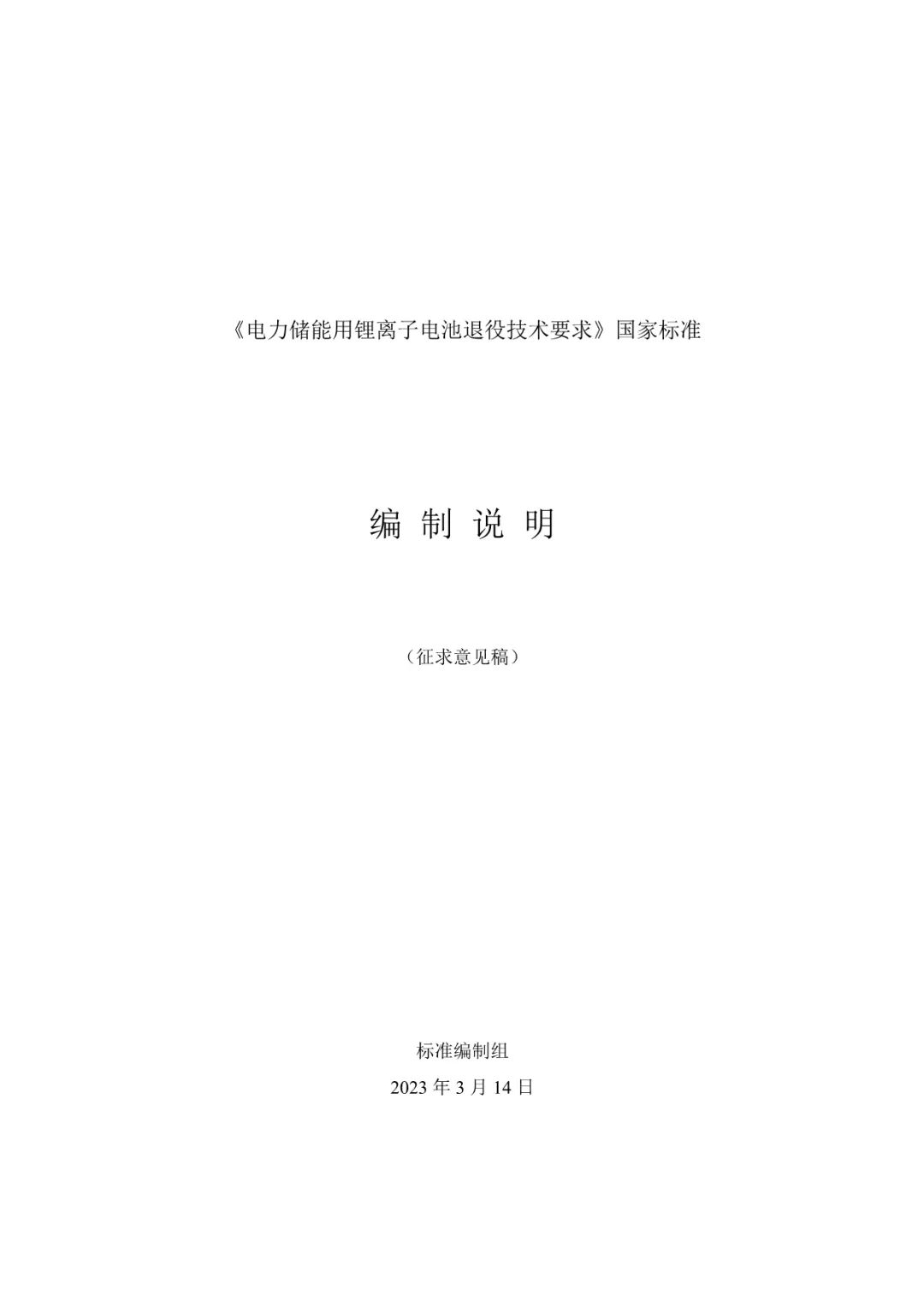 《 電力儲能用鋰離子電池退役技術(shù)要求》及編制說明原文如下: